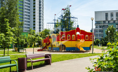 Каждый, кто решит купить квартиру в ЖК Каскад от застройщика, получит доступ к благоустроенной территории дома. Жилая часть комплекса имеет внешнее ограждение наземными паркингами, обеспечивающими защиту от шума. Зеленая зона занимает около половины всей территории, предусмотрено строительство детских площадок, установка скамеек и обустройство прогулочных зон.