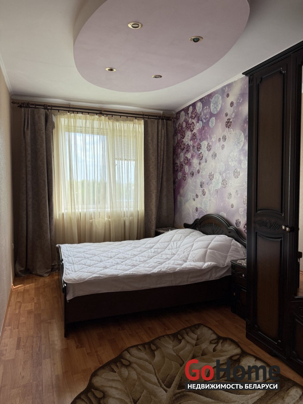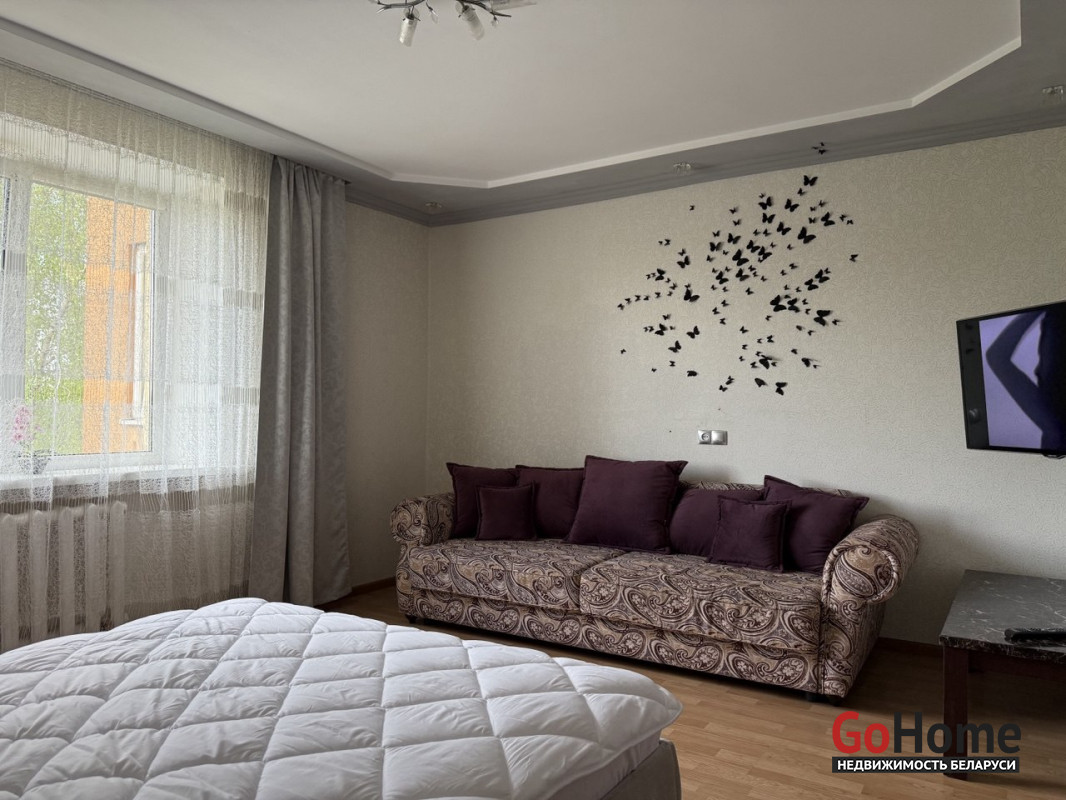 большая двухспальная кровать с ортопедическим матрасом, удобный диван на основе пружинных блоков и ЖК-телевизор.