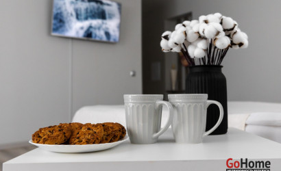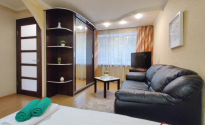 Апартаменты находятся в центре города на центральной площади имени Ленина. В апартаментах имеется удобная двухспальная кровать и раскладывающийся диван-кровать, телевизор с плоским экраном и кабельными каналами; полностью оборудованная кухня с духовым шкафом, микроволновой печью, столовыми приборами и всем необходимым кухонным инвентарём, необходимым для приготовления различных блюд; постельные принадлежности в отличном состоянии; имеется жидкое мыло, шампунь, также гости могут попить чай.