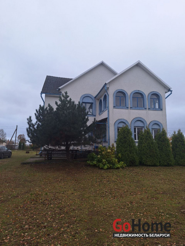 Дом 2х этажный с мансардой 240кв/м и подвал 100кв/м. Дом утеплен. Отопление и горячая вода – природный газ. Канализация автономная. Электроэнергия. 1 этаж: холл с камином, кухня, ванная, кабинет. 2 этаж: 4 жилые комнаты, туалет, гардеробная. Кровля – черепица песчано-цементная. Сад, ягоды, теплица. Рядом озеро Велье, озеро чистое, водятся окунь и щука. Торг.