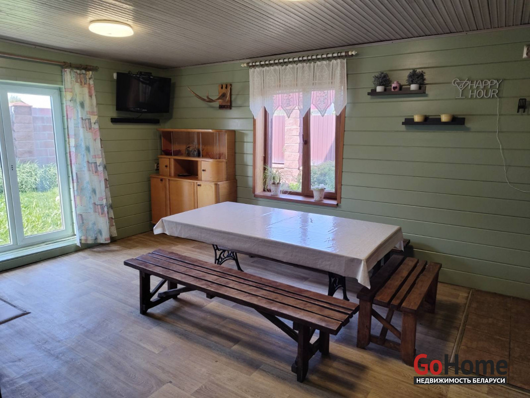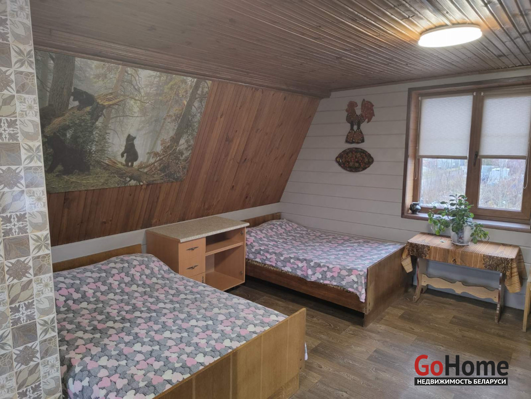 2-х этажный гостевой домик с сауной. Сауна на берёзовых дровах. На первом этаже сауна, душевая, санузел, комната отдыха с большим столом на 10 человек, телевизор , ВТ колонка, радио, бесплатный wi-fi. Мини кухня (холодильник, СВЧ печь, электрический чайник, комплект посуды на 8 человек). На втором этаже спальные места. Всего 8 спальных мест.(2+2+2+2).
