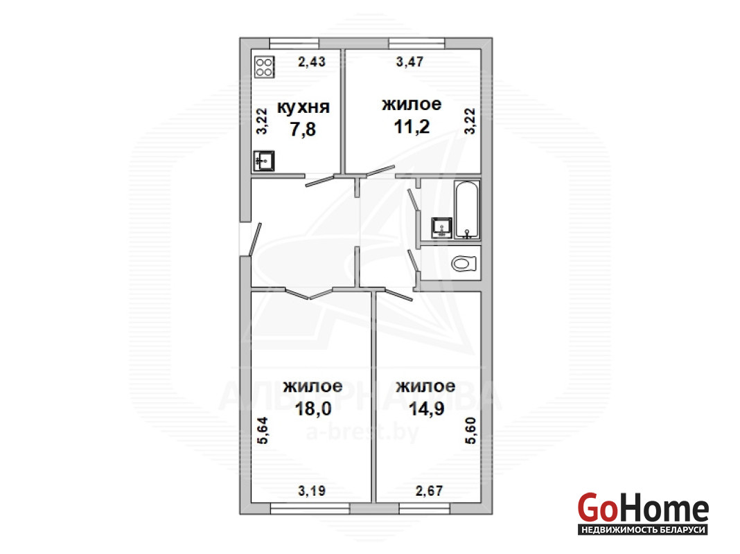 3-комнатная квартира, г. Брест, ул. Гоголя, 1975 г.п. 1 / 5 кирпич, 68,8 / 68,8 / 44,1 / 7,8, санузел раздельный, стеклопакеты, межкомнатные двери – шпон, потолки - снежка, полы - доска, стены оклеены обоями, телефон, домофон. Мебель по договоренности. Квартира в жилом состоянии. Квартира расположена на две стороны. Лот - 200830