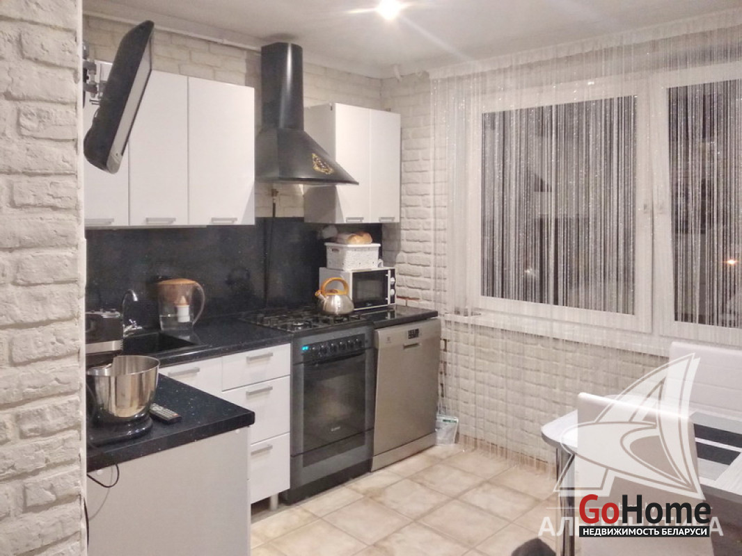3-комнатная квартира, г. Брест, ул. Вульковская, 1996 г.п., 5 / 9 панель, 74,0 / 69,4 / 40,6 / 9,1, санузел раздельный, две лоджии застеклены, стеклопакеты, межкомнатные двери - массив, входная дверь металлическая, потолки - снежка и натяжные, комбинированные, полы - ламинат (положен на ДСП), стены оклеены обоями, отделка камнем, в санузле современная плитка, заменена сантехника, заменен полотенцесушитель, акриловая ванна, заменены сантехнические трубы, телефон, домофон. Встроенный кухонный гарнитур, вытяжка, посудомоечная машина. Шкаф-купе в прихожей, корпусная мебель в комнате, диван. Остальная мебель по договоренности. Квартира с хорошим ремонтом. Квартира расположена на две стороны. Один пассажирский лифт. Во дворе игровая детская площадка, парковка для автомобилей. Лот - 193647