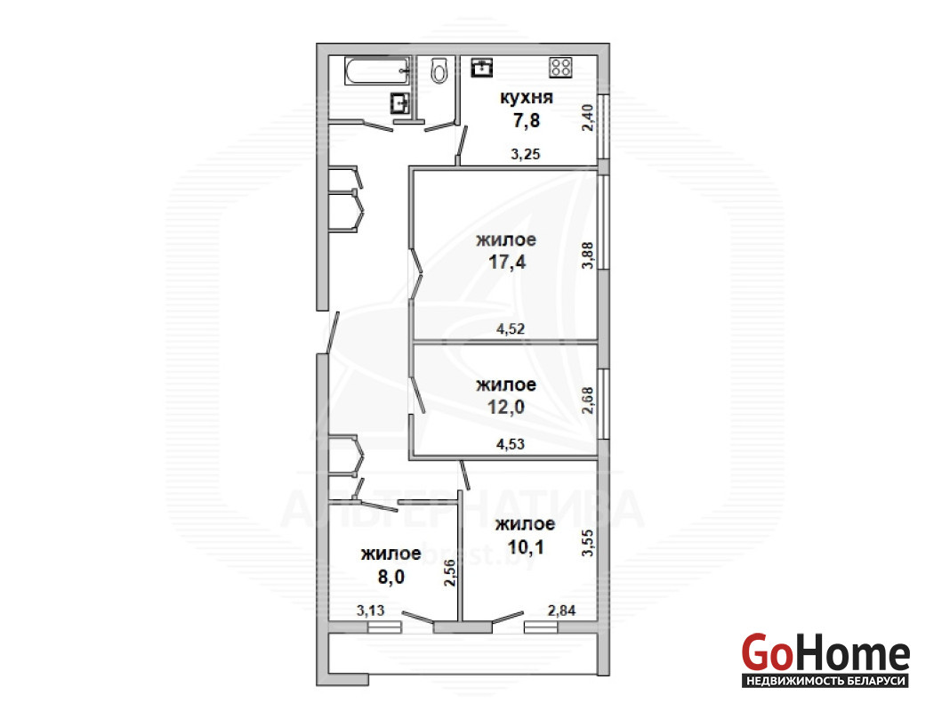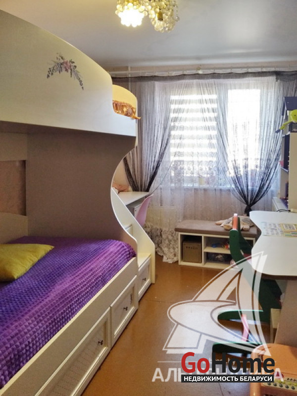 4-комнатная квартира, г. Брест, б-р Космонавтов, 1990 г.п., 8 / 9 кирпич, 75,8 / 72,9 / 47,5 / 7,8, санузел раздельный, лоджия застеклена, деревянные окна, деревянные стеклопакеты в спальнях, межкомнатные двери - массив, потолки - снежка (кухня) и натяжные (2,50 м), полы - ДСП и плитка, в санузле современная плитка, заменена сантехника, заменены сантехнические трубы (металл), телефон, домофон. Квартира находится под охраной. В квартире частично произведен ремонт. Один пассажирский лифт. Тамбур на две квартиры. Лот - 193490