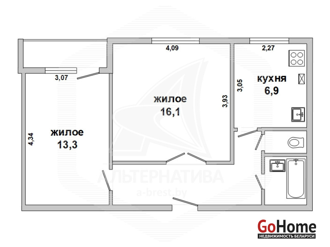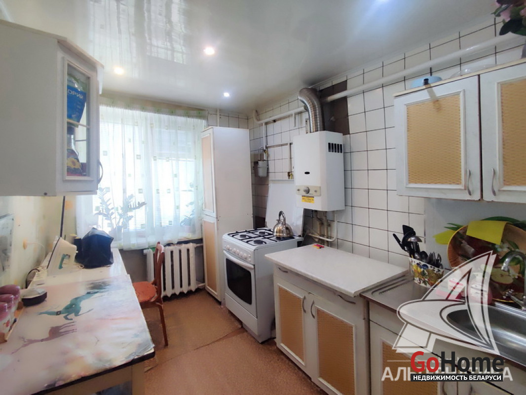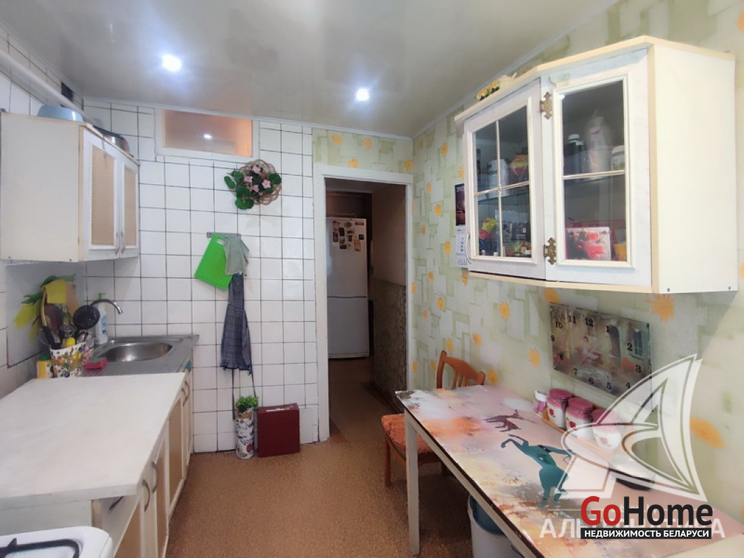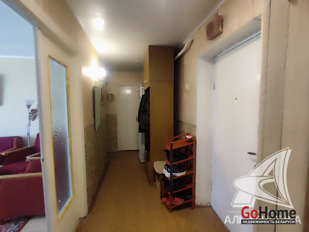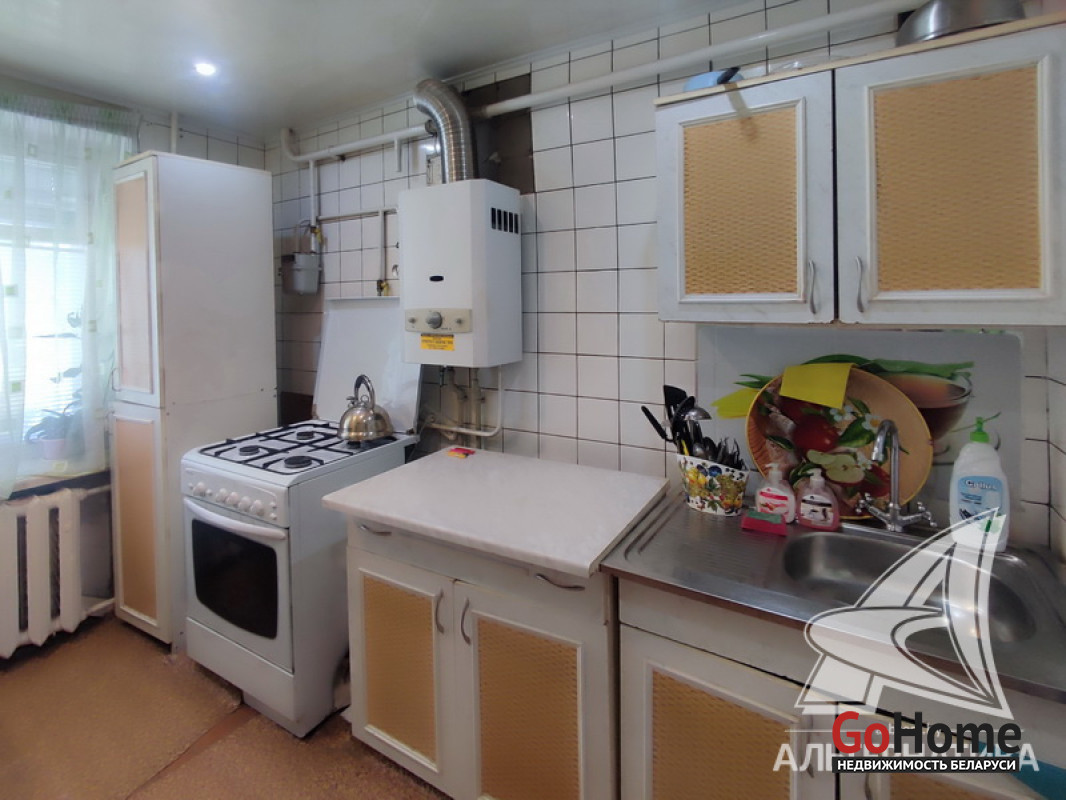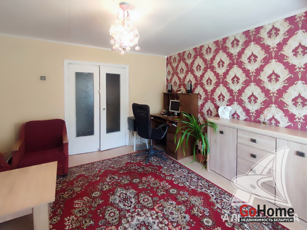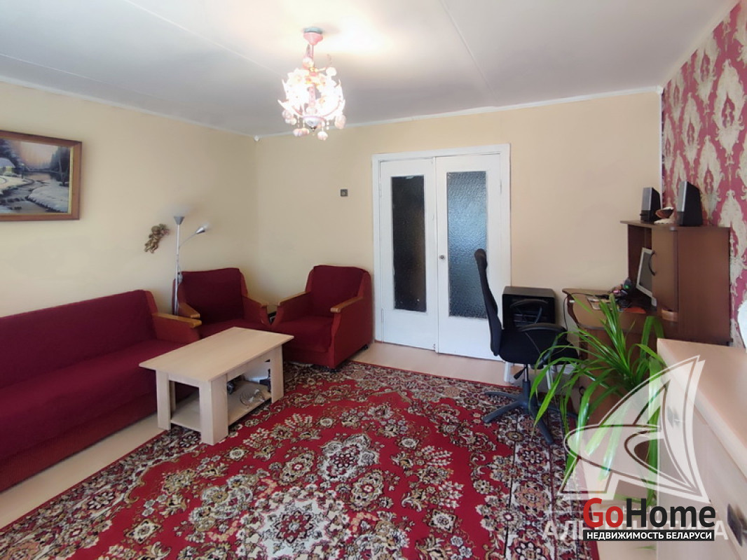 2-комнатная квартира, г. Кобрин, ул. Дзержинского, 1972 г.п., 1 / 5 кирпич, 49,0 / 47,4 / 29,4 / 6,9, санузел раздельный, лоджия застеклена, подвал, стеклопакеты в комнатах, деревянные межкомнатные двери, входные двери двойные деревянные, потолки - снежка (комнаты), оклеены касетонами и сайдинг (коридор, кухня) (2,50 м), полы - доска крашеная и линолеум (кухня, коридор), стены оклеены обоями, стальная ванна, заменены сантехнические трубы, газовая колонка в кухне, новый электросчетчик, телефон, домофон. Кухонный гарнитур. Квартира в жилом состоянии. Все окна выходят во двор. Капитальный ремонт дома 2015 г. Произведен ремонт крыши, заменены окна в подъезде. Во дворе игровая детская площадка, парковка для автомобилей. Дом расположен в глубине двора. Лот - 192308