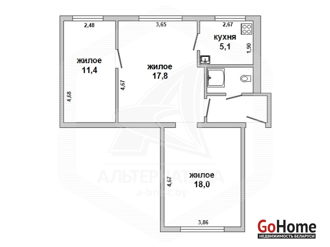 3-комнатная квартира, г. Брест, ул. Защитников Отечества, 1936 г.п., 2 / 3 кирпич, 58,3 / 58,3 / 47,2 / 5,1, санузел совмещенный, подвал, стеклопакеты, межкомнатные двери – экошпон, входная дверь металлическая, потолки - побелка (3,0 м), полы - паркет и линолеум (кухня), стены оклеены обоями, чугунная ванна, газовая колонка в кухне, новые батареи, телефон, домофон. Встроенный кухонный гарнитур. Стиральная машина по договоренности. Квартира в жилом состоянии. Квартира расположена на две стороны. Чистый подъезд. Лот - 191750