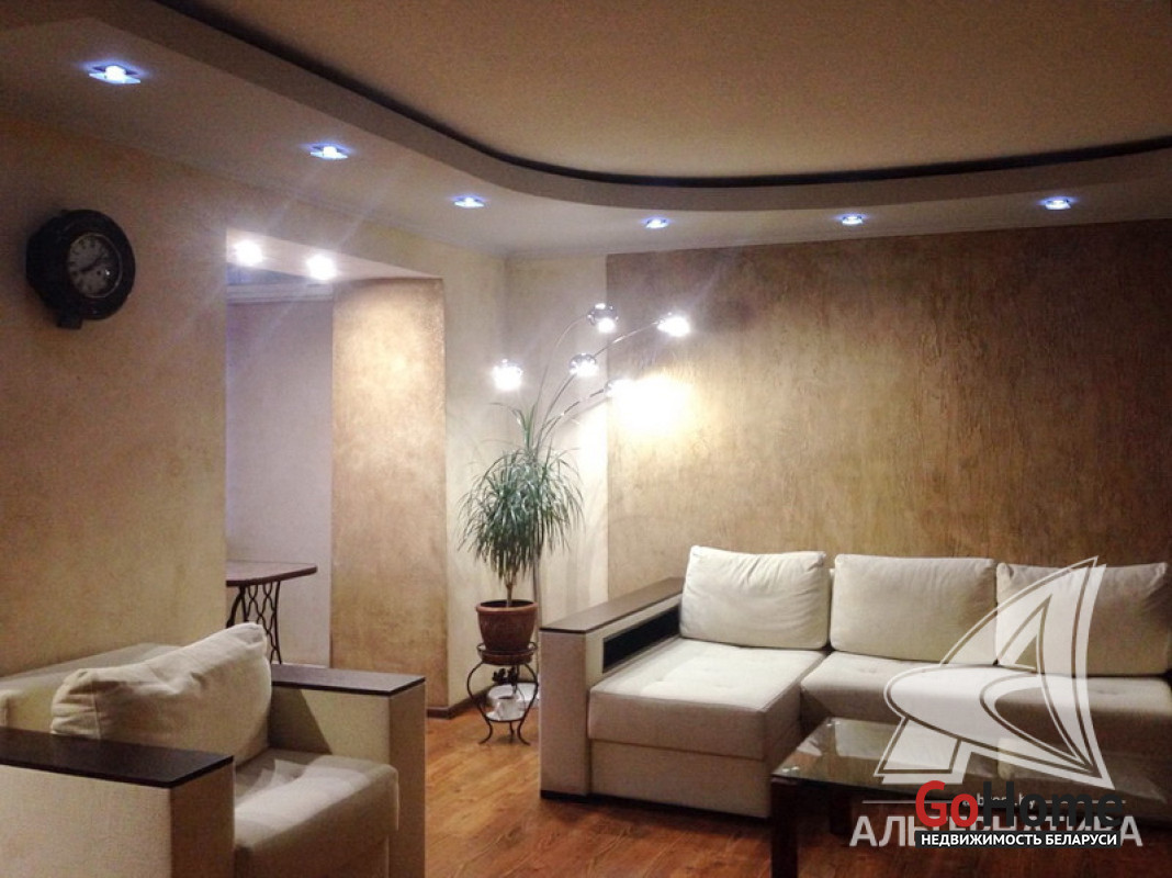 2-комнатная квартира, г. Брест, ул. Стафеева, 1998 г.п., 1 / 5 кирпич, 77,6 / 77,6 / 50,2 / 13,0, санузел совмещенный, подвал, комбинированные многоуровневые натяжные потолки с интересной системой освещения (2,53 м), стеклопакеты, полы - ламинат и плитка (положены на стяжку), в санузле современная плитка, заменена сантехника, заменен полотенцесушитель, душевая кабина, входная дверь двойная - металлическая и деревянная, стены оклеены обоями, декоративная отделка венецианской штукатуркой, кондиционер, телефон, домофон. Кухонный гарнитур, бытовая техника, спутникова антенна. Корпусная и мягкая мебель по договорённости. Квартира с индивидуальными дизайнерскими решениями. Квартира расположена на две стороны. Во дворе парковка для автомобилей. В шаговой доступности детский сад, школа, остановки общественного транспорта, магазин. Лот - 190586
