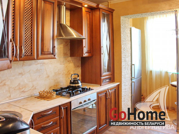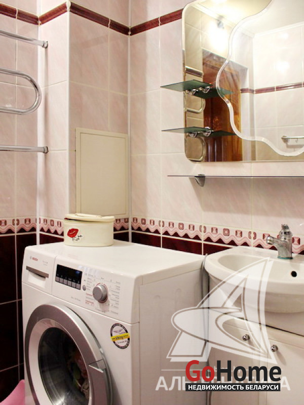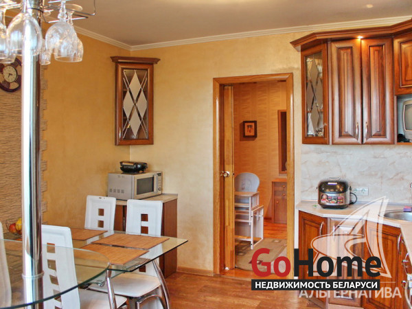 3-комнатная квартира, г. Брест, ул. Менжинского, 2003 г.п., 2 / 9 кирпич, 83,1 / 80,6 / 49,0 / 9,3, санузел раздельный, подвал, две лоджии застеклены, натяжные потолки (глянец), деревянные двухкамерные стеклопакеты, полы - доска под лак и плитка (кухня) (положены на стяжку), в санузле современная плитка, заменены трубы, подогрев пола (в ванной и на лоджии), межкомнатные двери - массив, входная дверь металлическая, на стенах декоративная отделка камнем и штукатуркой, проведена новая электропроводка, телефон, домофон. Встроенный кухонный гарнитур, барная стойка, варочная поверхность, духовой шкаф, вытяжка, спальный гарнитур, шкаф-купе, прихожая. Квартира с индивидуальными дизайнерскими решениями. Квартира расположена на две стороны. Один грузопассажирский лифт. Тамбур на четыре квартиры, колясочная. Во дворе игровая детская площадка, парковка для автомобилей. Лот - 182990