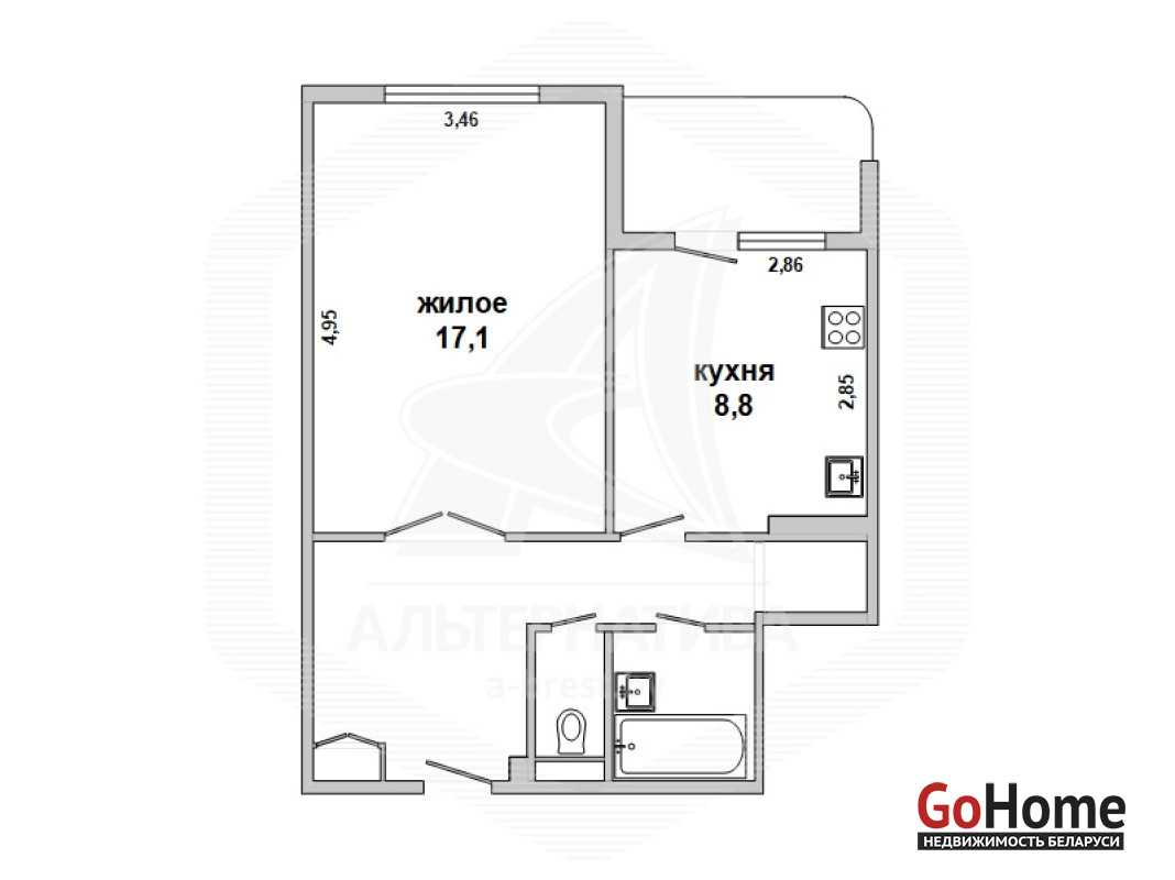1-комнатная квартира, г. Брест, ул. Мичурина, 1986 г.п., 3 / 9 панель, 42,6 / 40,9 / 17,1 / 8,8, санузел раздельный, лоджия не застеклена, потолки - натяжные (коридор) и снежка (2,65 м), стеклопакеты, полы - плитка и ламинат, сантехника и электрика переделаны на новый современный лад, входная дверь металлическая, телефон, домофон. Встроенный кухонный гарнитур, вытяжка, варочная поверхность, шкаф-купе, гардеробная, новая проводка. Установлена сигнализация. Лот - 182249