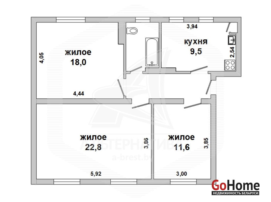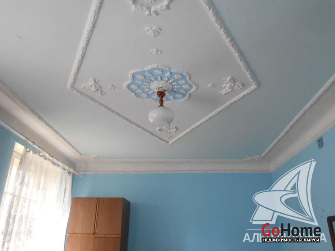 3-комнатная квартира, г. Брест, ул. Жукова, 1936 г.п., 1 / 3 кирпич, 72,5 / 72,5 / 52,4 / 9,5, санузел совмещенный, подвал, потолки - лепнина, потолочная плитка и вагонка, деревянные стеклопакеты, полы - плитка с подогревом и паркет, в санузле плитка нового образца, межкомнатные двери - сосна, входная дверь металлическая, телефон, домофон. Встроенный кухонный гарнитур, шкаф-купе в прихожей, новая газовая колонка, действующий камин. Квартира в жилом состоянии. Польский дом, высокий цоколь, по две квартиры на площадке. Лот - 182116