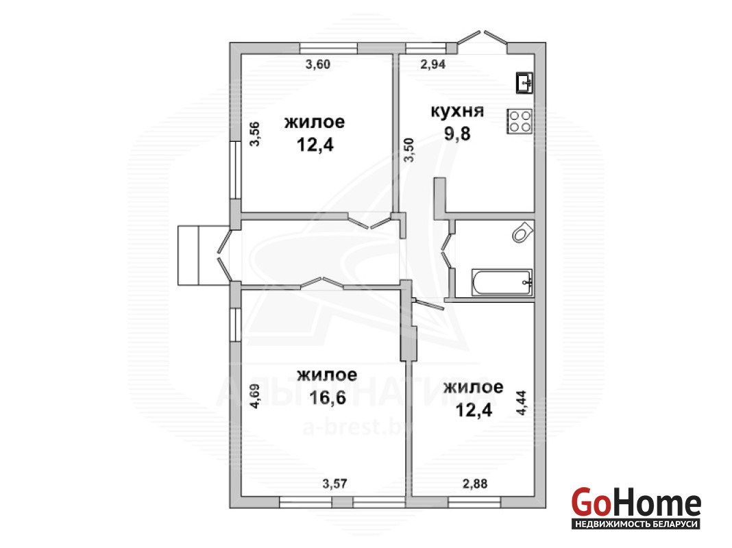 3-комнатная квартира, г. Брест, ул. Буденного, до 1917 г.п., 1 / 2 кирпич, 62,1 / 62,1 / 41,4 / 9,8, санузел совмещенный, подвал, потолки - 3,2 м, деревянные полы, телефон. Квартира в жилом состоянии. Лот - 180697