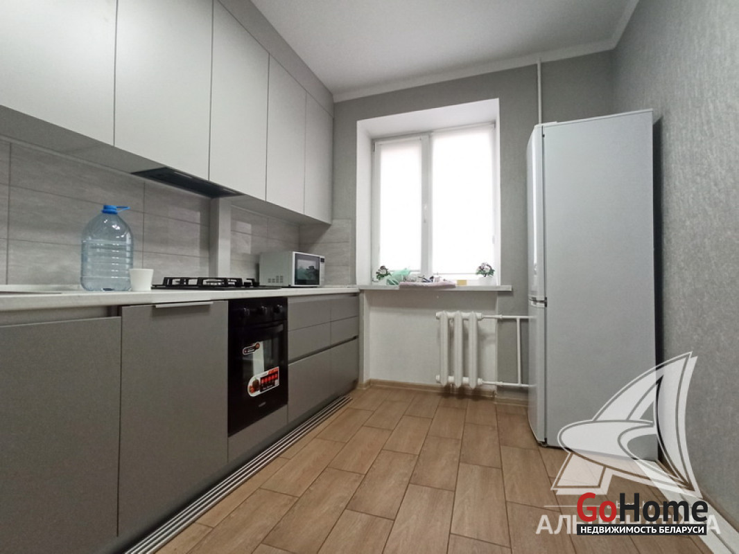 1-комнатная квартира, г. Брест, ул. Малая, 1988 г.п., 1 / 5 кирпич, 35,7 / 35,7 / 18,7 / 7,6, санузел раздельный, подвал, потолки - снежка, стеклопакеты, полы - плитка и ламинат, новая сантехника и современная плитка в санузле, межкомнатные двери - шпон, домофон. Кухонный гарнитур, бытовая техника, включая духовой шкаф, газовая варочная панель, вытяжка, посудомоечная машина, микроволновая печь, стиральная машина, холодильник. Также в квартире остаётся: диван, новая кровать с матрацем, комод. В коридоре-вместительный шкаф-купе. Квартира с хорошим ремонтом. Лот - 180521