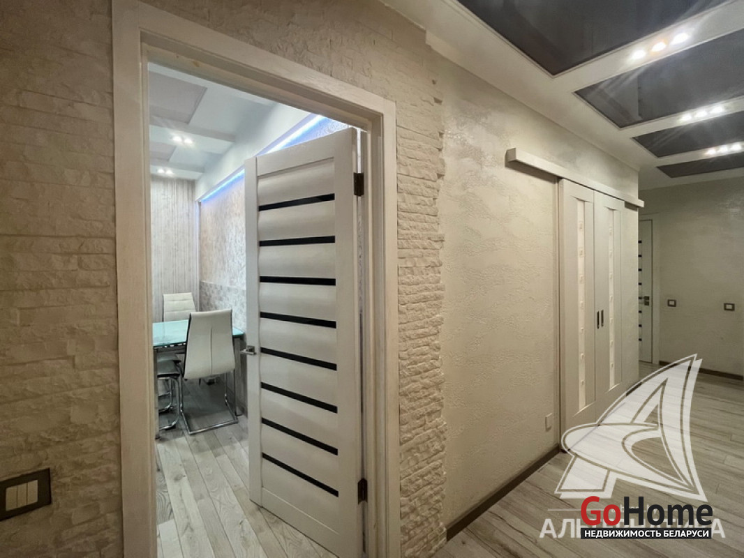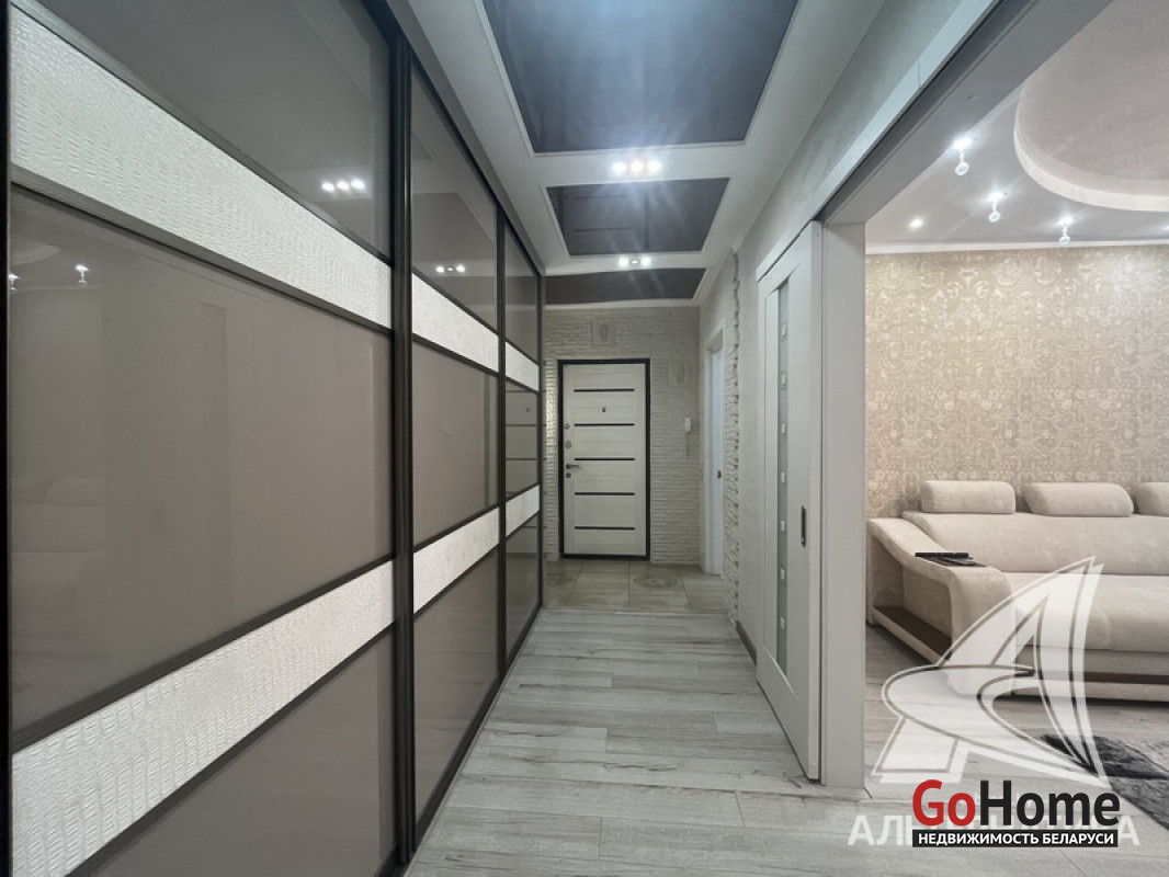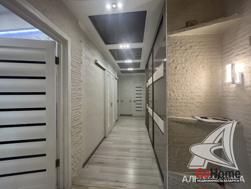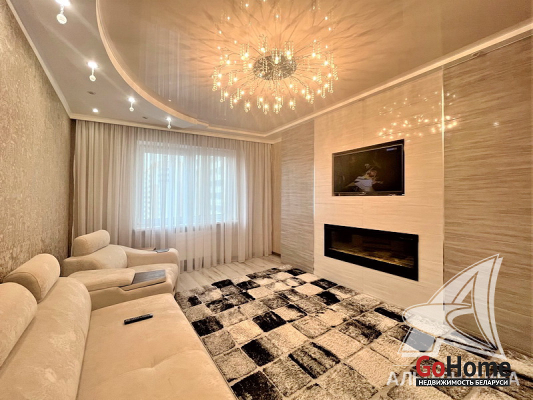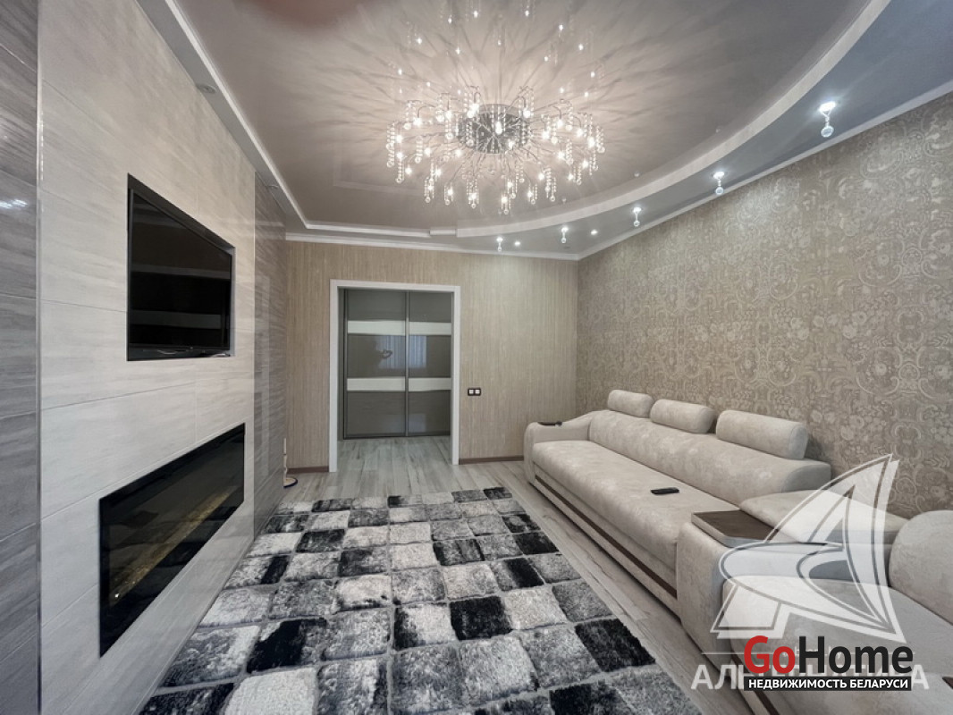 3-комнатная квартира, г. Брест, ул. Махновича, 2016 г.п., 5 / 10 панель, 79,9 / 76,7 / 47,2 / 10,5, санузел раздельный, лоджия застеклена, потолки - разноуровневые и натяжные с подсветкой (2,64 м), стеклопакеты, полы с электро подогревом - ламинат и плитка (импортного производства), отделка стен - декоративная штукатурка, современная плитка в санузле, межкомнатные двери - шпон с элементами декора, входная дверь металлическая, телефон, домофон. Шкаф-купе, корпусная мебель, декоративный камин. Квартира с индивидуальными дизайнерскими решениями. Лот - 180267
