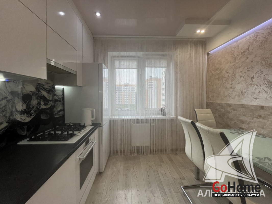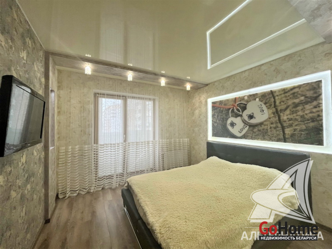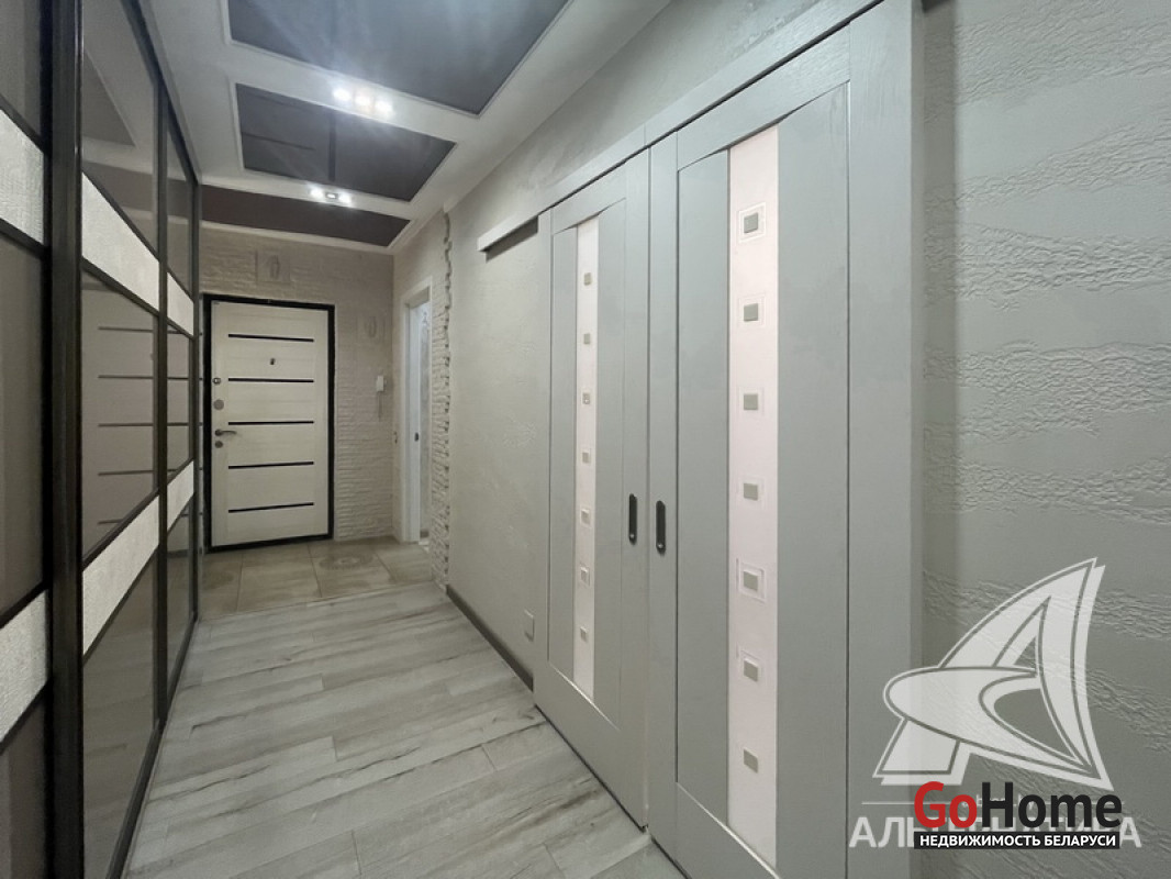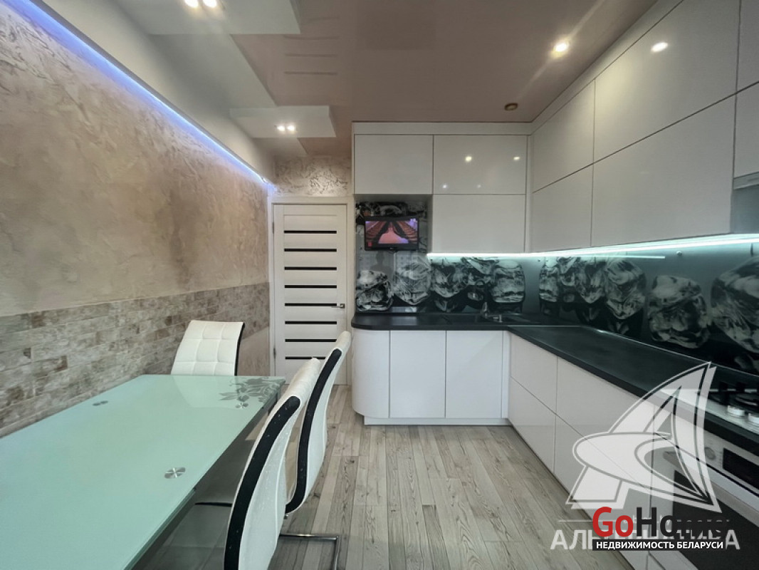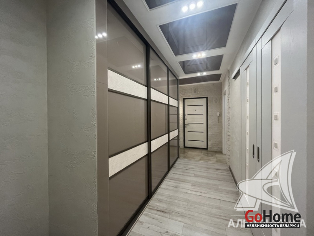3-комнатная квартира, г. Брест, ул. Махновича, 2016 г.п., 5 / 10 панель, 79,9 / 76,7 / 47,2 / 10,5, санузел раздельный, лоджия застеклена, потолки - разноуровневые и натяжные с подсветкой (2,64 м), стеклопакеты, полы с электро подогревом - ламинат и плитка (импортного производства), отделка стен - декоративная штукатурка, современная плитка в санузле, межкомнатные двери - шпон с элементами декора, входная дверь металлическая, телефон, домофон. Шкаф-купе, корпусная мебель, декоративный камин. Квартира с индивидуальными дизайнерскими решениями. Лот - 180267