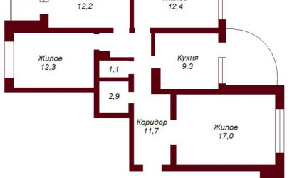 3-комнатная, 69.1/40.6/9.5 м2, Этаж 10 из 12, 1982 г.