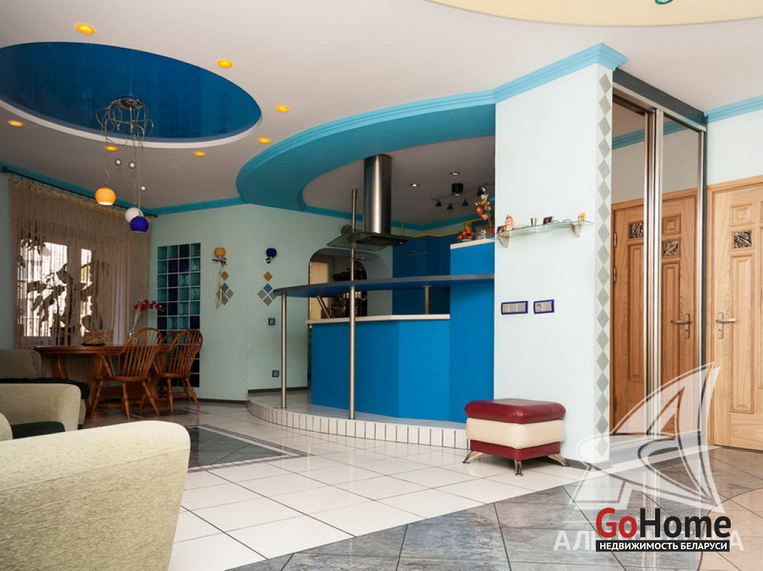 5-комнатная квартира, г. Брест, ул. Энгельса, 2002 г.п., 1 / 8 кирпич, 182,4 / 177,0 / 127,0 / 12,2, 2 санузел, две лоджии застеклены, потолки - двухуровневые и снежка (2,75 м), стеклопакеты (Польша), полы - паркет (ясень), в ванной итальянская плитка, польская сантехника, межкомнатные двери - массив (ясень), входная дверь металлическая, телефон, домофон. Немецкая кухня и бытовая техника (духовой шкаф, кофеварка, посудомоечная машина, холодильник). Квартира с индивидуальными дизайнерскими решениями. Лот - 162229