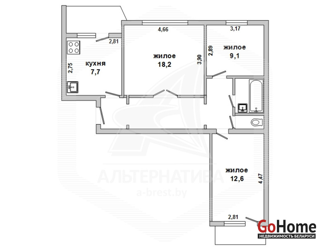 3-комнатная квартира, г. Брест, ул. Московская, 1975 г.п., 6 / 9 кирпич, 68,4 / 65,2 / 39,9 / 7,7, санузел раздельный, две лоджии застеклены, подвал, потолки - 2,51 м, стеклопакеты, полы - ламинат, новая плитка и сантехника, деревянные межкомнатные двери, входная дверь металлическая, телефон, домофон. Встроенный кухонный гарнитур, шкаф-купе, корпусная и мягкая мебель. Квартира с хорошим ремонтом. Лот - 160174