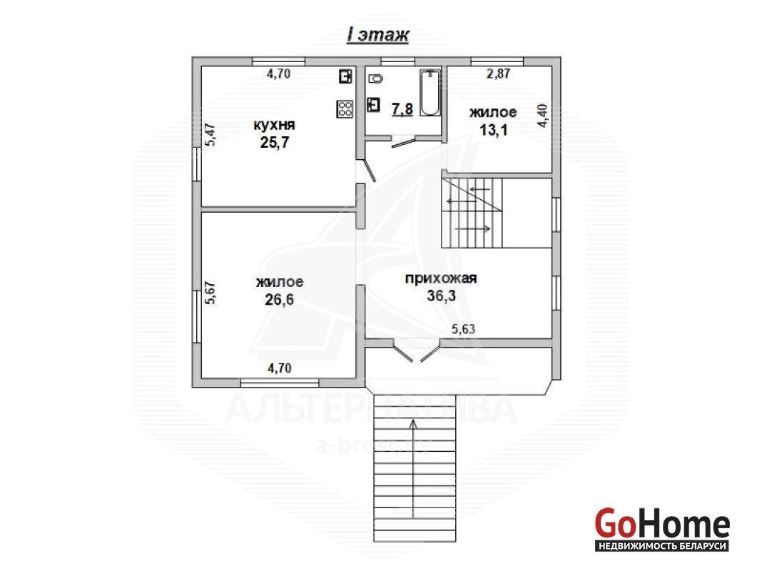 Жилой дом в г.Бресте. 2006 г.п. 2 этажа, цокольный этаж. Общ.СНБ - 332,2 кв.м, общ.- 217,5 кв.м, жил.- 105,3 кв.м, кух.- 25,7 кв.м. 5 комнат, потолки - 2,8 м.