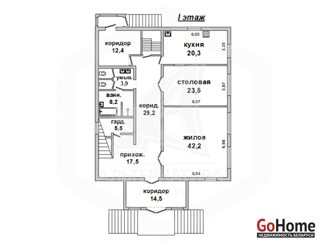 Жилой дом в г.Бресте. 1998 г.п. 2 этажа, мансарда, подвальный этаж. Общ.СНБ - 614,6 кв.м, общ.- 437,7 кв.м, жил.- 196,6 кв.м, кух.- 20,3 кв.м. 6 комнат, потолки - 2,85 м.