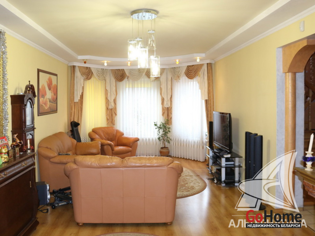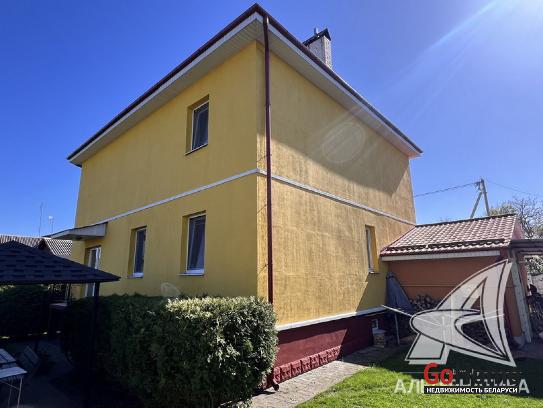 Жилой дом в г.Бресте. 2005 г.п. 2 этажа, цокольный этаж. Общ.СНБ - 297,4 кв.м, общ.- 170,3 кв.м, жил.- 92,7 кв.м, кух.- 11,3 кв.м. 4 комнаты, потолки - 2,9 м.