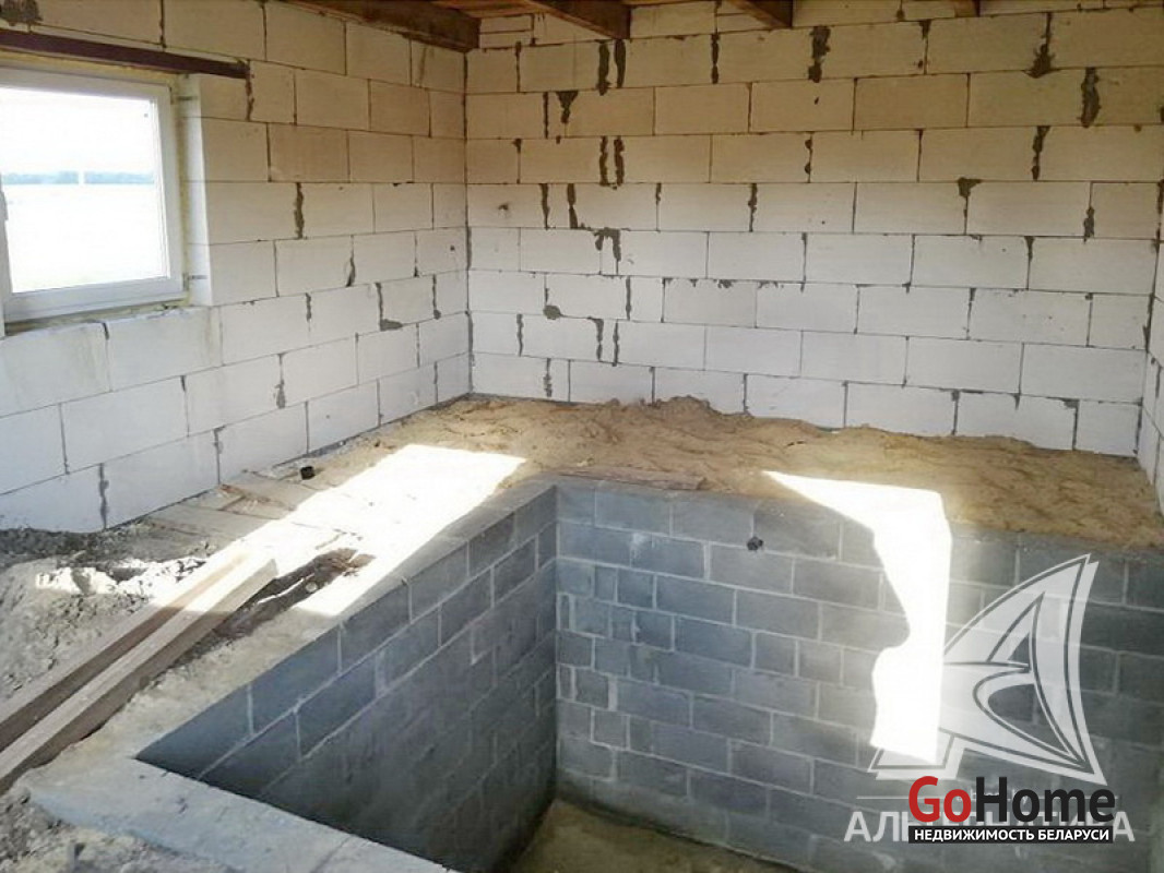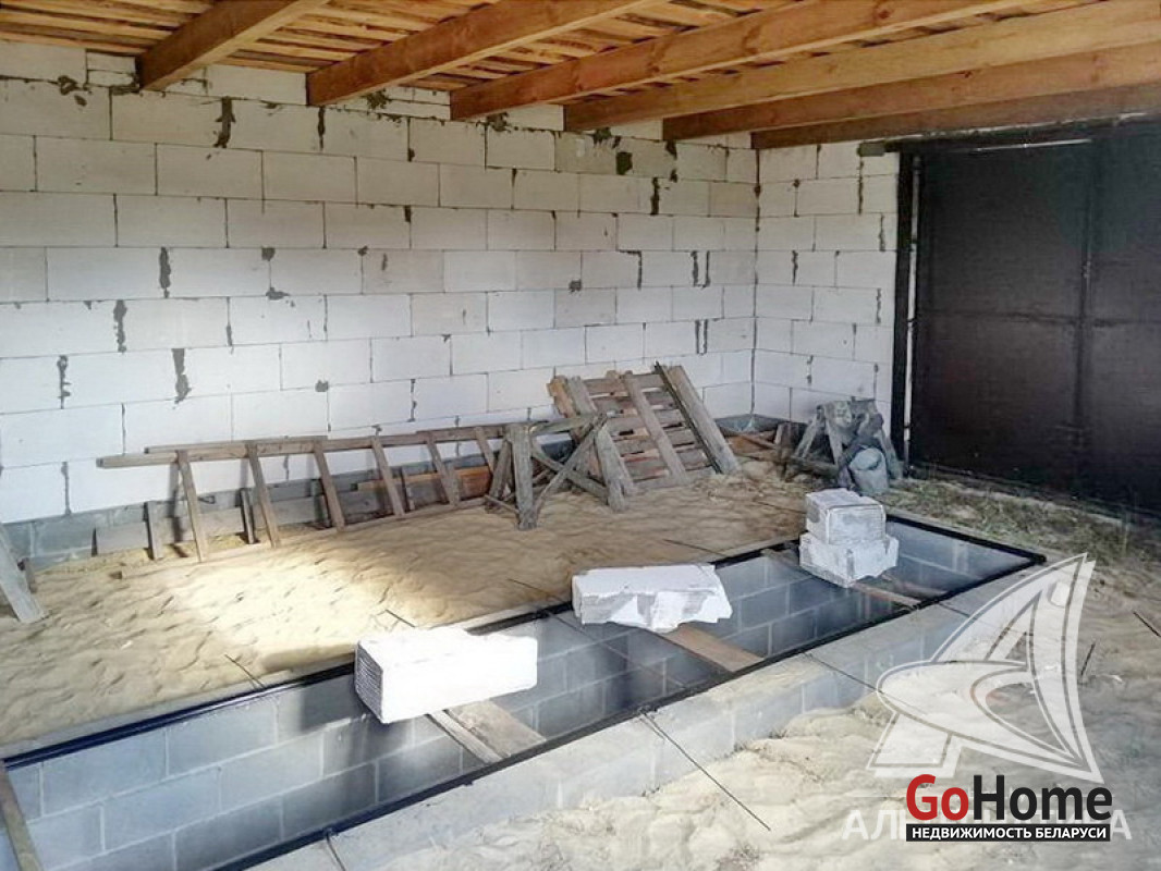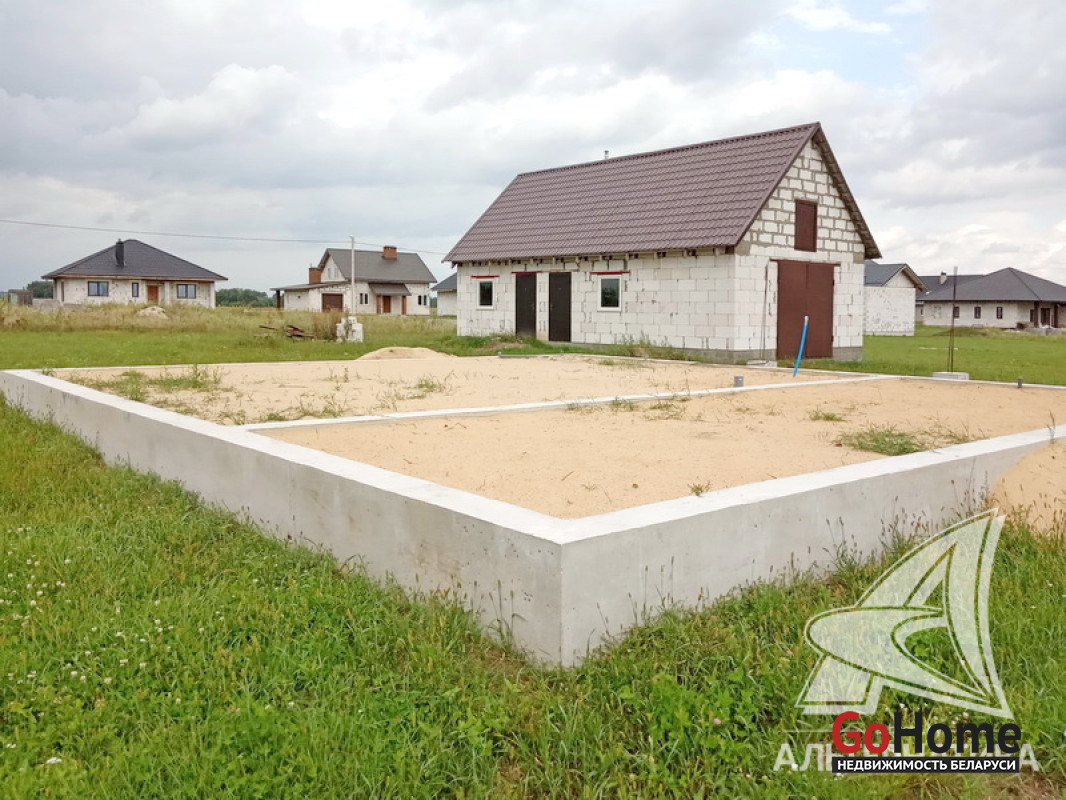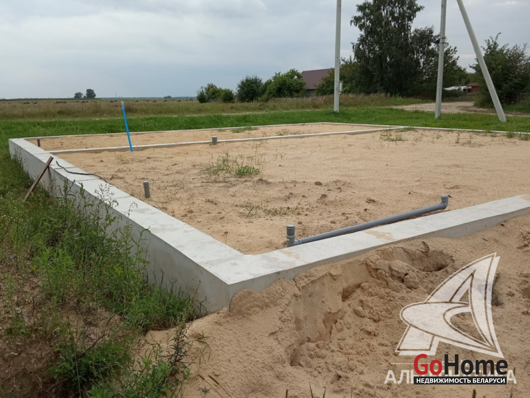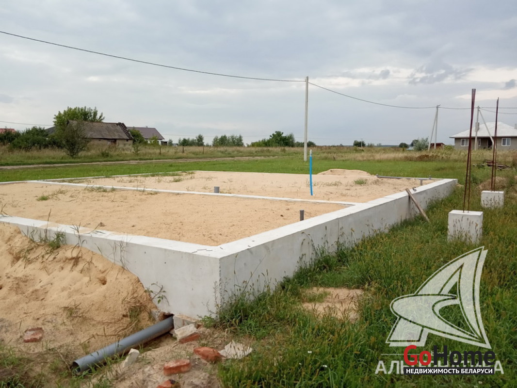 Незавершенное законсервированное капитальное строение на стадии фундамента в Брестском р-не. 2018 г.п. Общ.- 118,0 кв.м. Фундамент: ленточный монолитный; материал - бетон; подушка - бетонная.