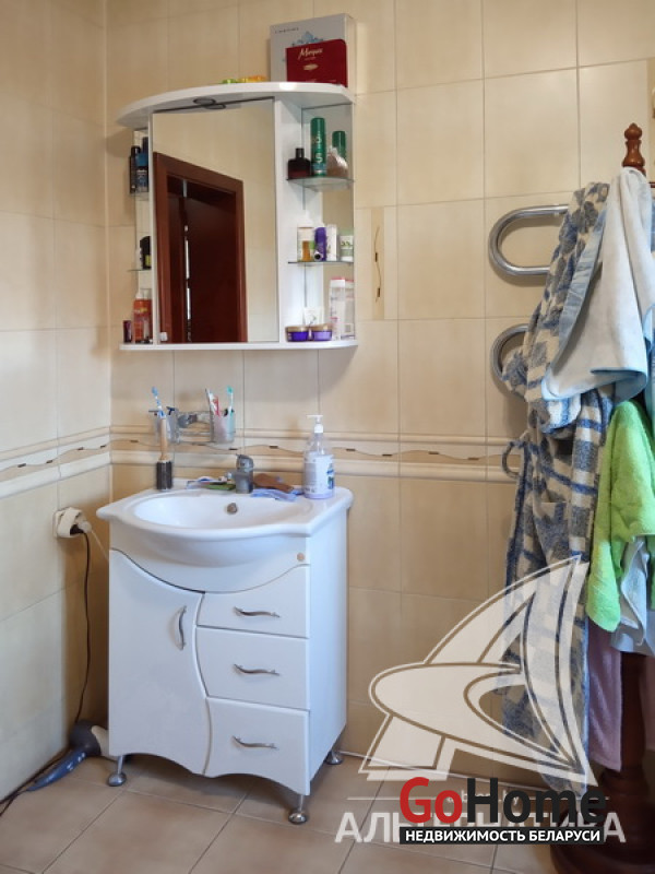 Жилой дом в Кобринском р-не. 2006 г.п. 2 этажа, цокольный этаж. Общ.СНБ - 310,1 кв.м, общ.- 188,9 кв.м, жил.- 96,1 кв.м, кух.- 16,8 кв.м. 4 комнаты, высота потолка - 2,70 м.