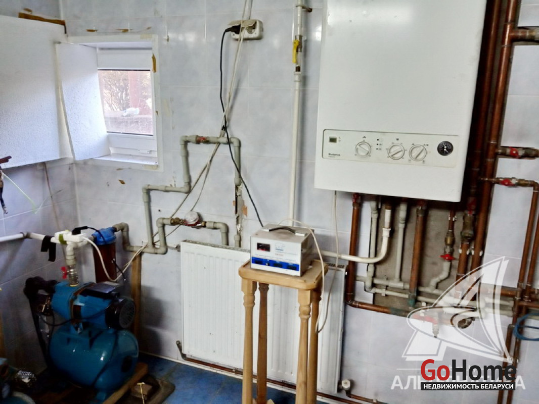 Коммуникации: отопление - газовый котел, газ - централизованный, водоснабжение - скважина и гидрофор, электричество - централизованное, канализация - централизованная.