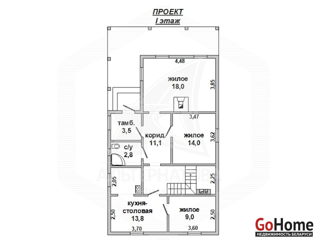 Жилой дом в Жабинковском р-не. 1 этаж, мансарда. Общ.СНБ - 127,2 кв.м, общ.- 127,2 кв.м, жил.- 71,81 кв.м, кух.- 13,18 кв.м. 5 комнат, высота потолка - 2,5 м.