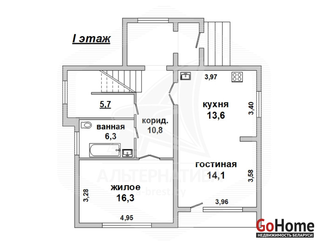 Жилой дом в г.Бресте. 1980 г.п. 2 этажа. Общ.СНБ - 142,2 кв.м, общ.- 131,6 кв.м, жил.- 74,3 кв.м, кух.- 13,6 кв.м. 5 комнат, потолки - 2,8 м.