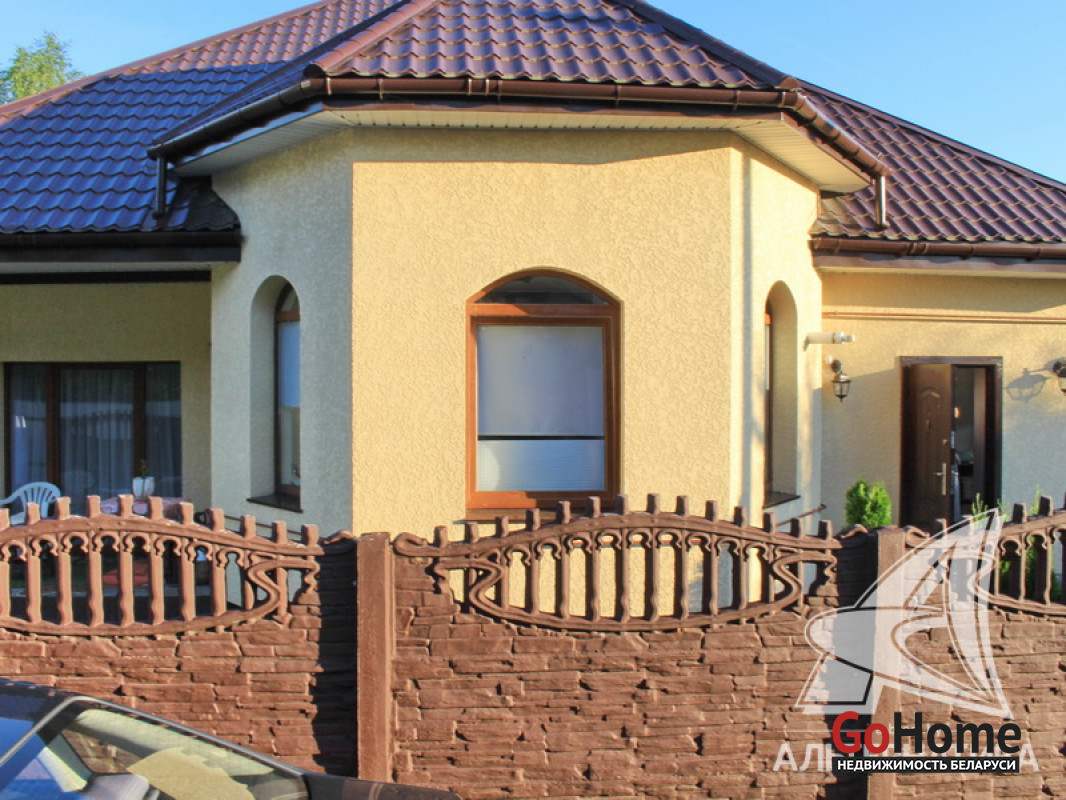 Стены: материал - газосиликатный блок; утепление - пенополистирол; отделка фасада - штукатурка "короед". Кровля: металлочерепица. Фундамент: ленточный монолитный; материал - бетон; подушка - бетонная.