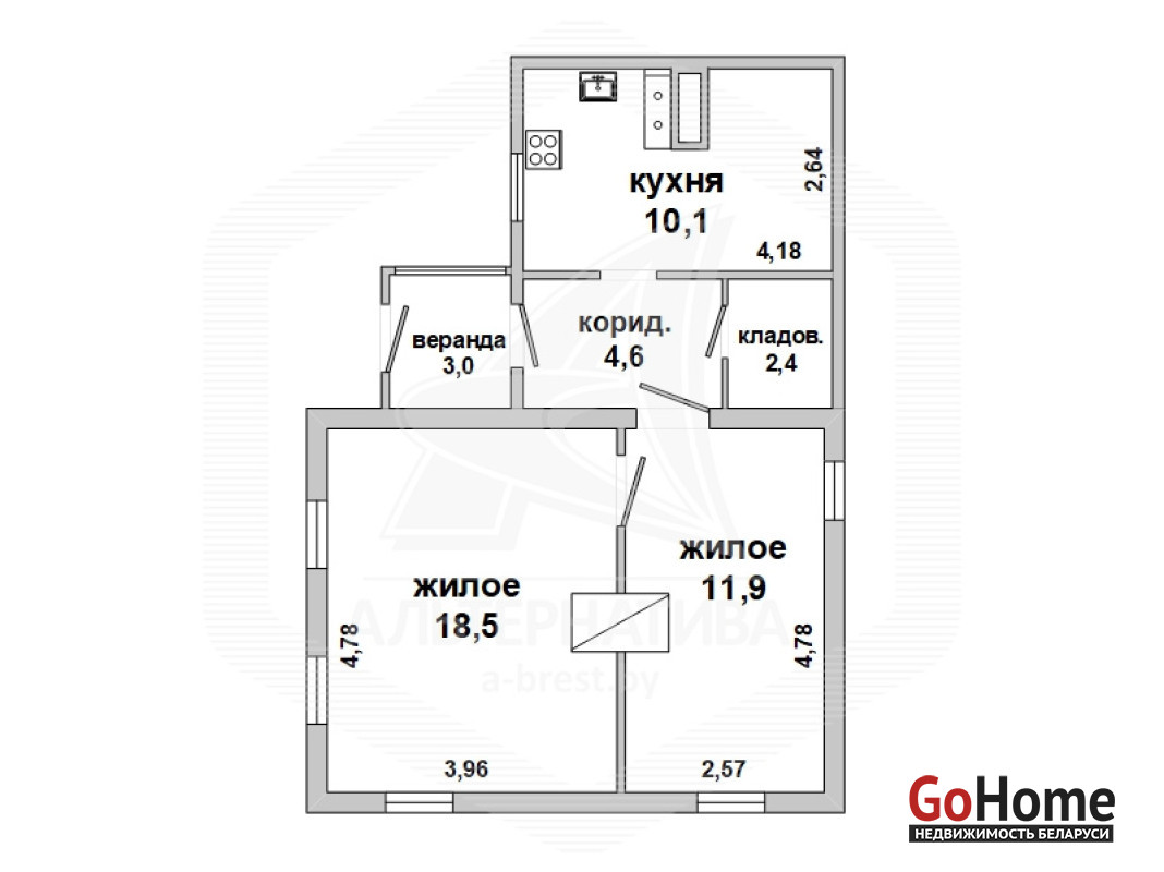 Жилой дом в г.Бресте. 1940 г.п., реконструкция 2014 г. 1 этаж. Общ.СНБ - 50,5 кв.м, общ.- 47,5 кв.м, жил.- 30,4 кв.м, кух.- 10,1 кв.м. 2 комнаты, потолки - 2,5 м.