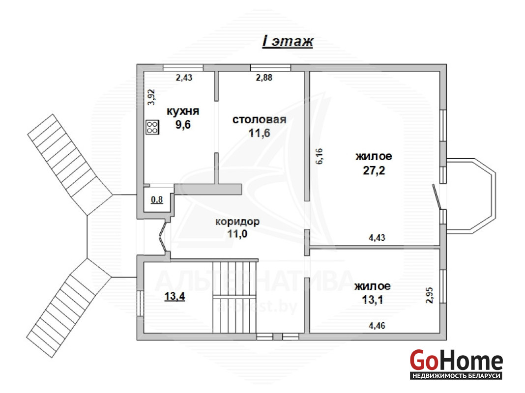 Жилой дом в г.Бресте. 2005 г.п. 2 этажа, цокольный этаж. Общ.СНБ - 267,3 кв.м, общ.- 174,4 кв.м, жил.- 111,9 кв.м, кух.- 9,6 кв.м. 5 комнат, потолки - 2,7 м.