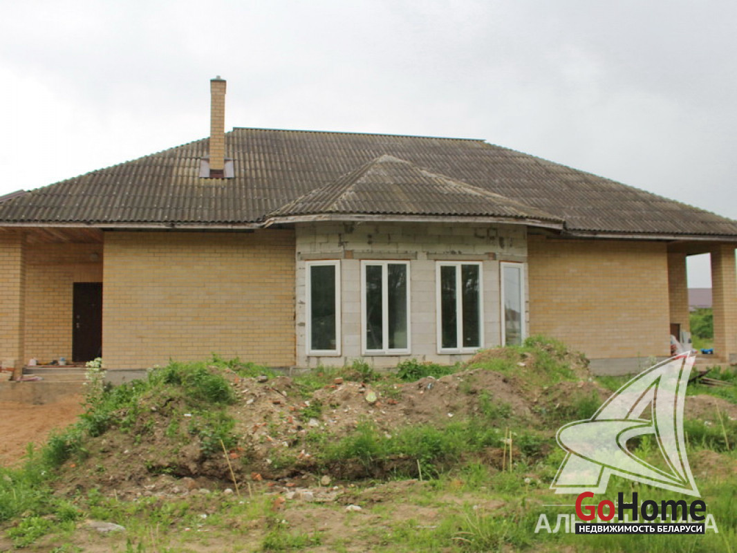 Стены: материал - газосиликатный блок; отделка фасада - силикатный кирпич. Кровля: шифер. Фундамент: ленточный монолитный; материал - бетон.