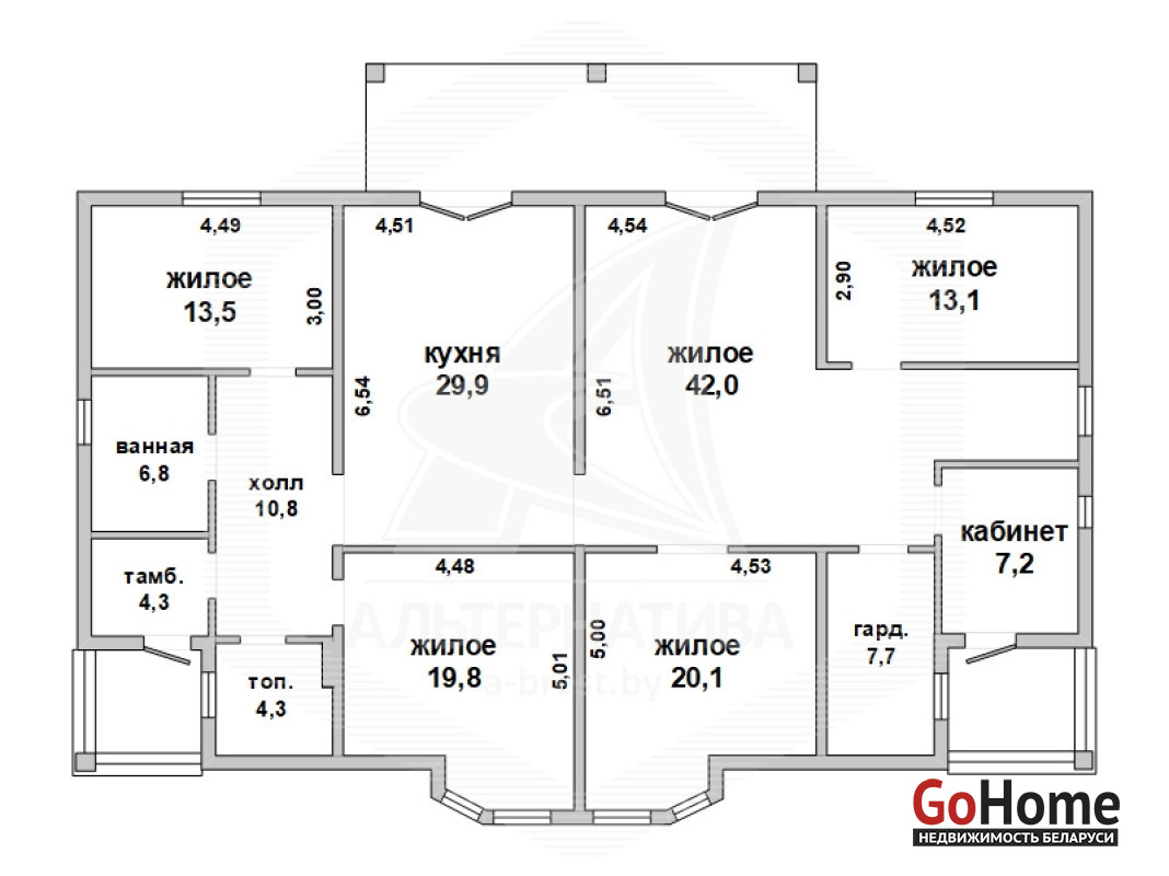 Тех. хар-ка жилого дома: 2018 г.п. 1 этаж. Общ.СНБ - 185,1 кв.м, общ.- 179,5 кв.м, жил.- 115,7 кв.м, кух.- 29,9 кв.м. 5 комнат, высота потолка - 2,9 м.