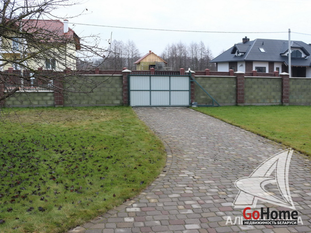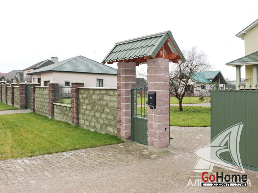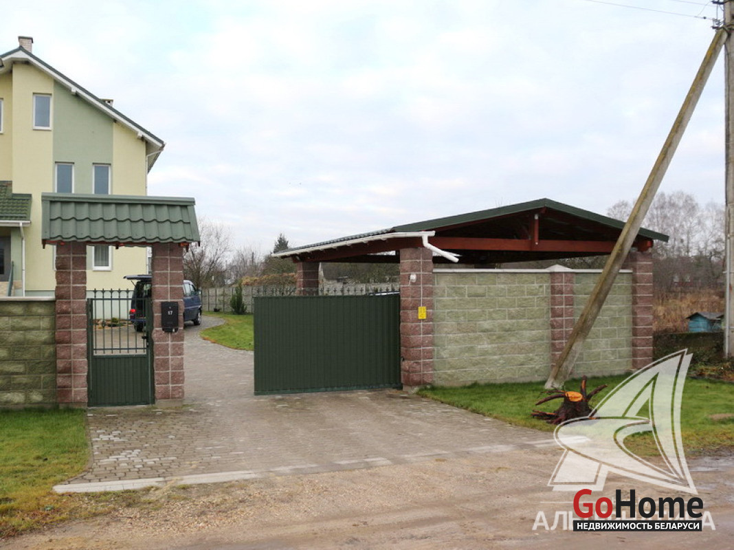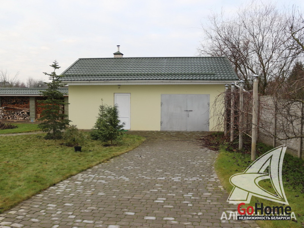 Хоз.постройки: навес под автомобиль, два гаража (в цоколе и отдельно стоящий). Охранная сигнализация и автоматические ворота. Участок - 0,2043 га. Лот - 183266