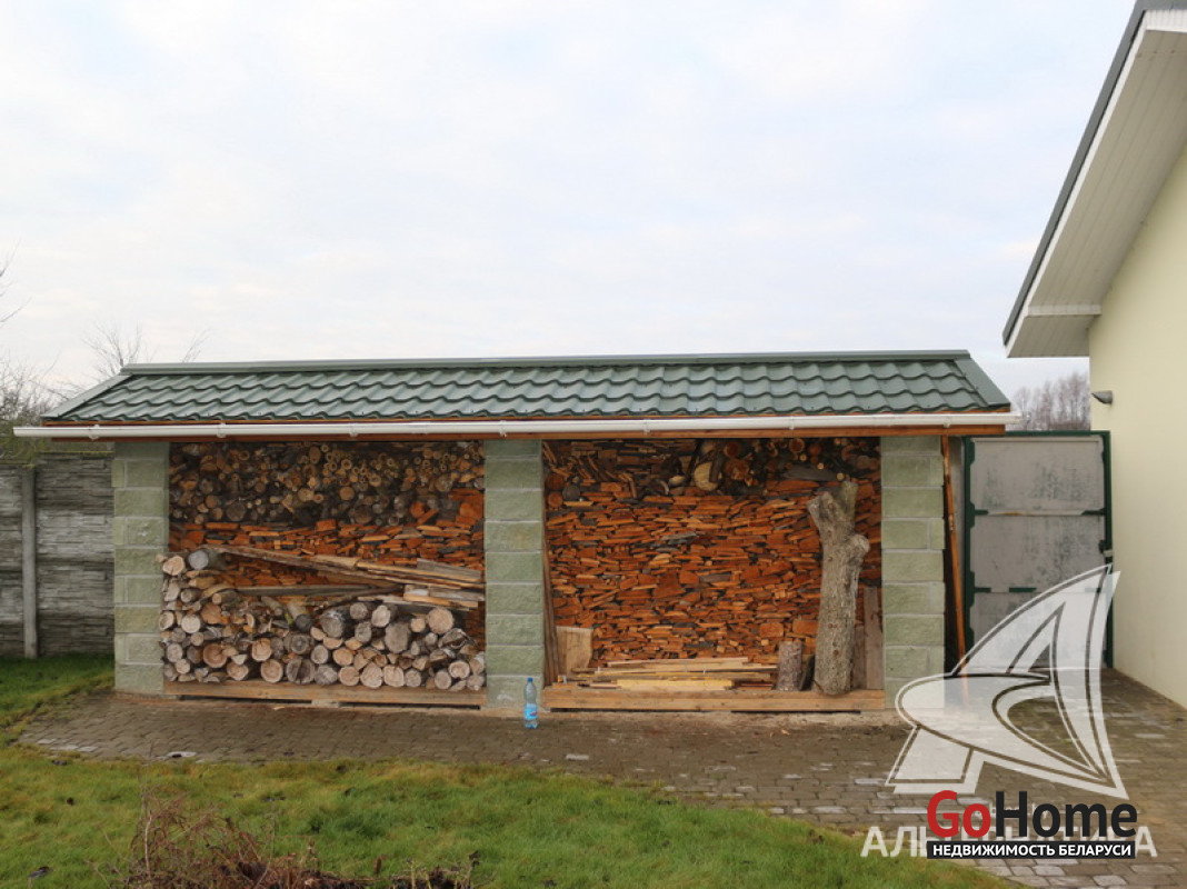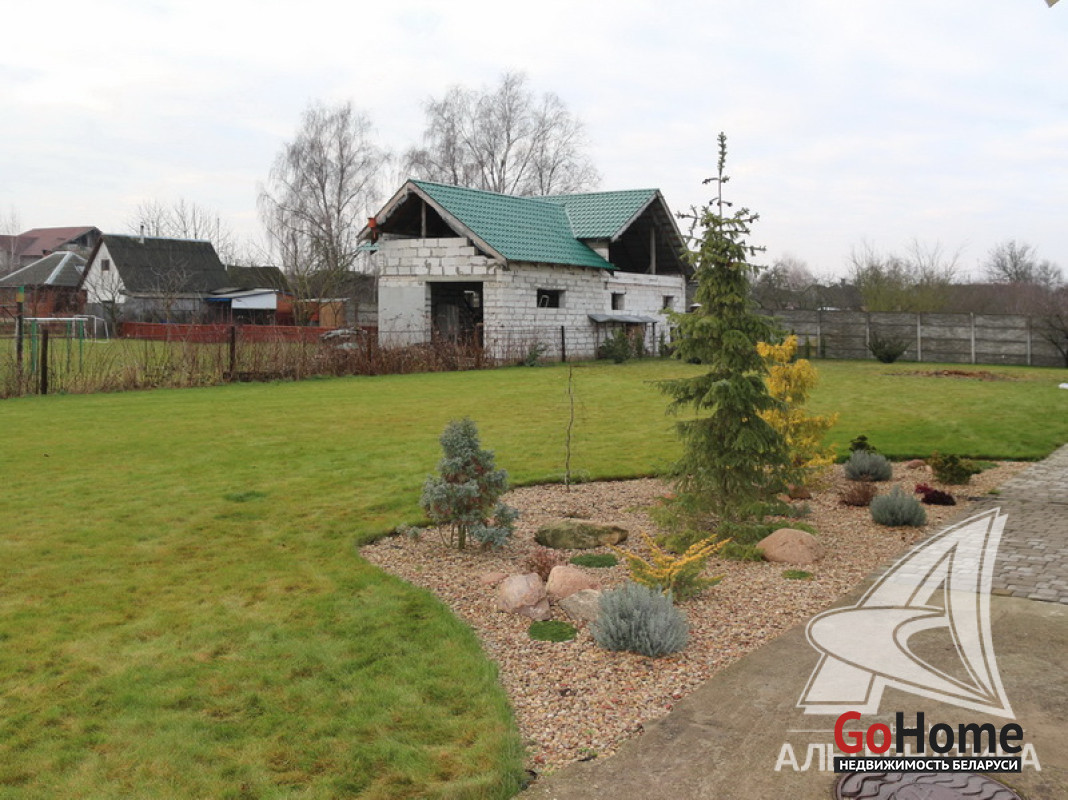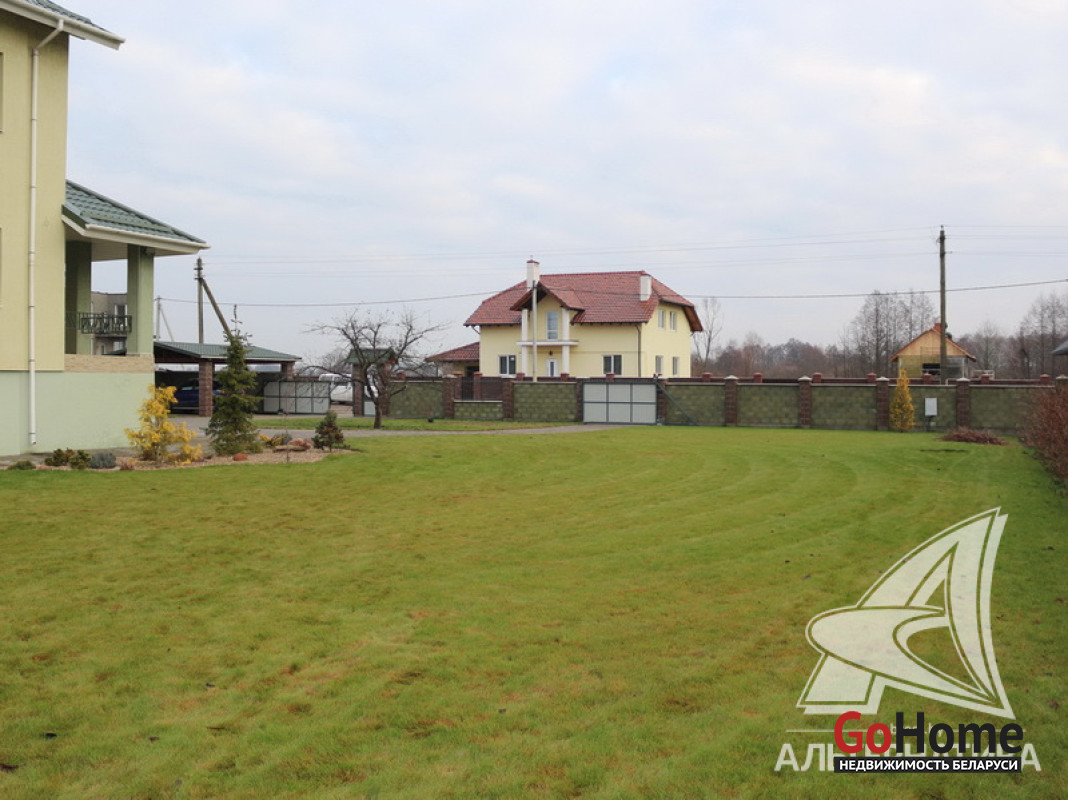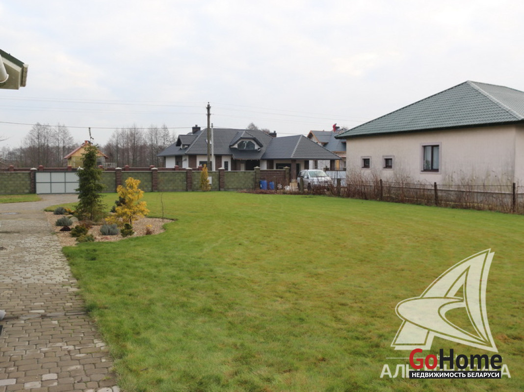 Хоз.постройки: навес под автомобиль, два гаража (в цоколе и отдельно стоящий). Охранная сигнализация и автоматические ворота. Участок - 0,2043 га. Лот - 183266