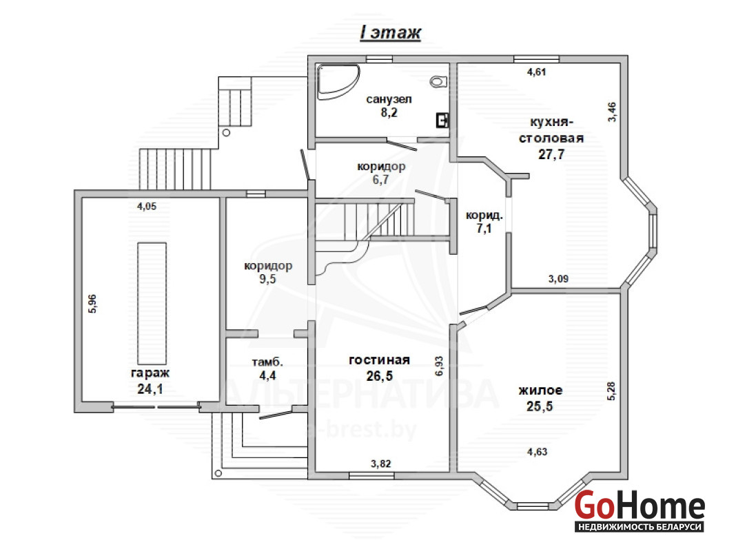Жилой дом в г.Бресте. 2009 г.п. 1 этаж, мансарда, подвальный этаж. Общ.СНБ - 376,6 кв.м, общ.- 239,5 кв.м, жил.- 117,3 кв.м, кух.- 27,7 кв.м. 5 комнат, потолки - 2,7 м.