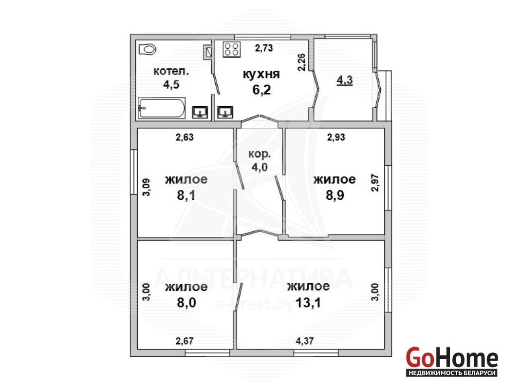 Жилой дом в г.Бресте. 1964 г.п., реконструкция 2015 г. 1 этаж. Общ.СНБ - 57,1 кв.м, общ.- 52,8 кв.м, жил.- 38,1 кв.м, кух.- 6,2 кв.м. 4 комнаты.