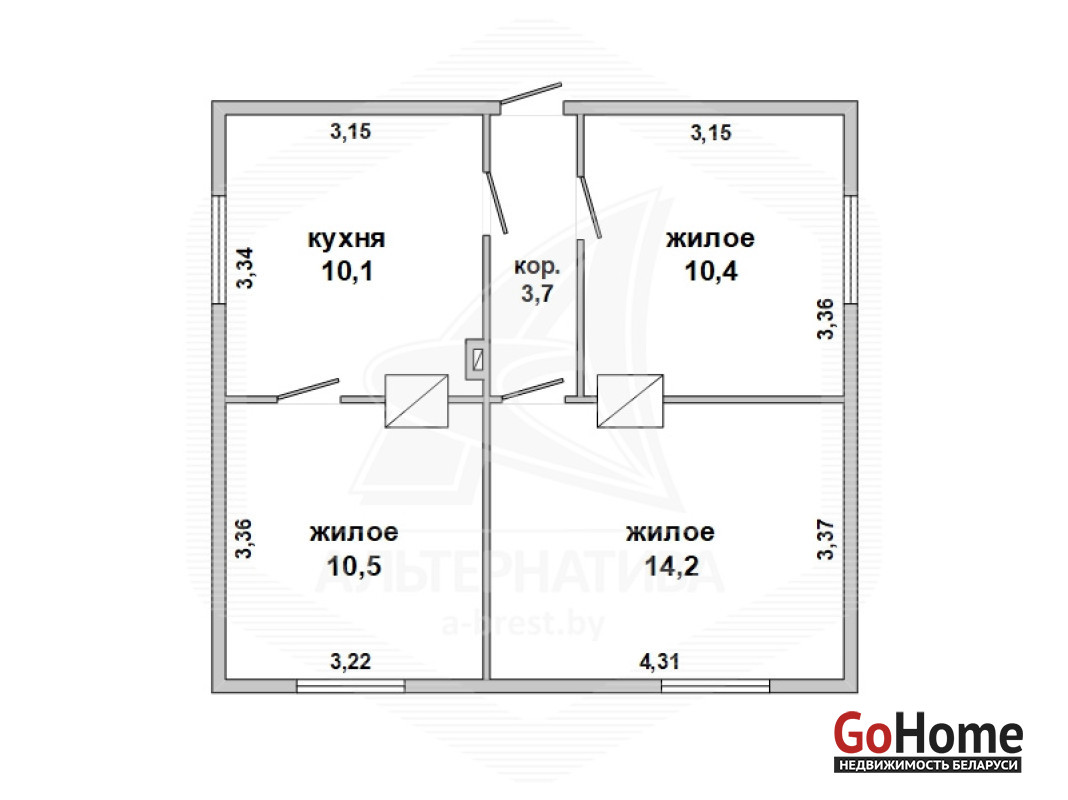 Дом под снос в г.Бресте. 1960 г.п. 1 этаж. Общ.- 48,9 кв.м, жил.- 35,1 кв.м, кух.- 10,1 кв.м. 3 комнаты, потолки - 2,7 м.