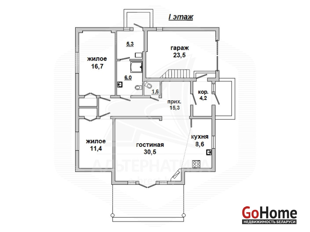 Жилой дом в Каменецком р-не. 2014 г.п. 1 этаж, мансарда. Общ.СНБ - 170,7 кв.м, общ.- 141,4 кв.м, жил.- 90,8 кв.м, кух.- 8,6 кв.м. 4 комнаты, высота потолка - 2,7 м.
