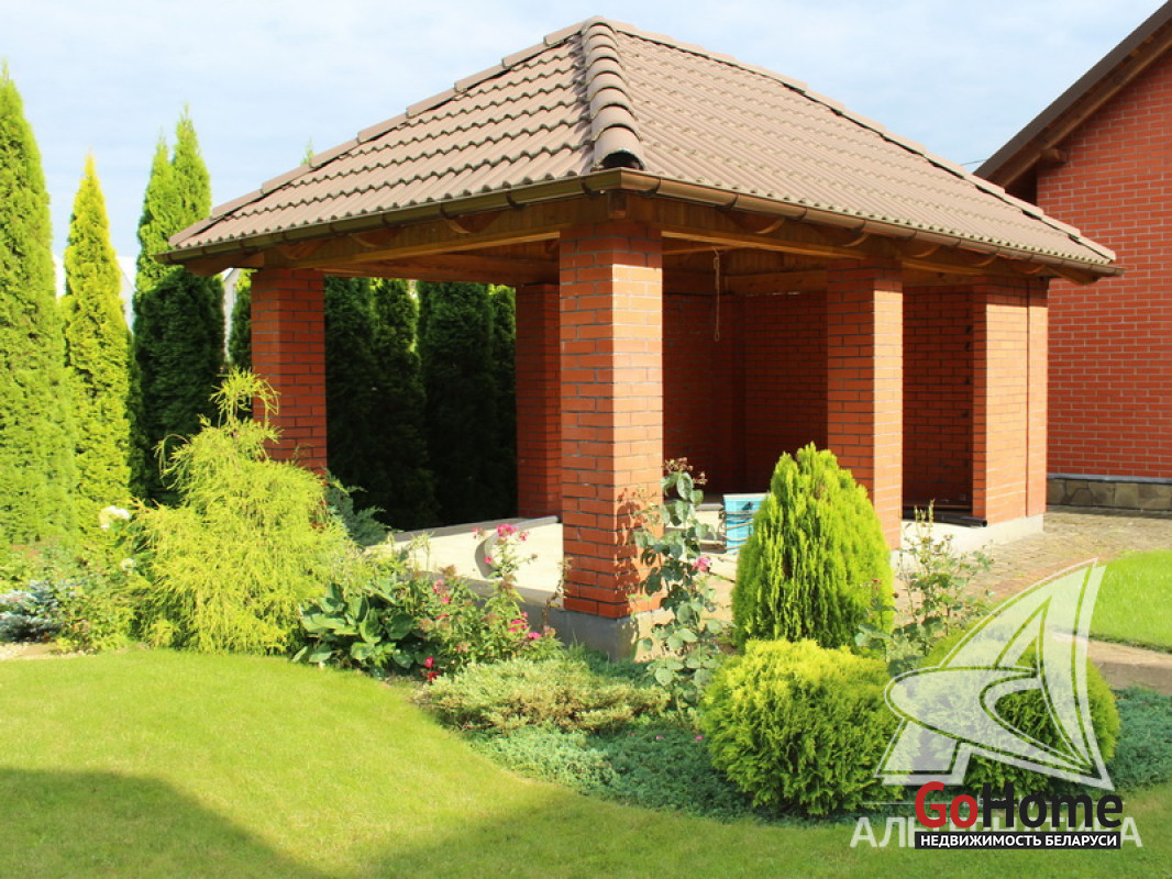 Хоз.постройки: баня, беседка с барбекю, встроенный гараж на два авто, двойной гараж с комнатой отдыха. Ворота с электроприводом. Система охранной сигнализации. Участок благоустроен. Участок - 0,1499 га. Лот - 172827