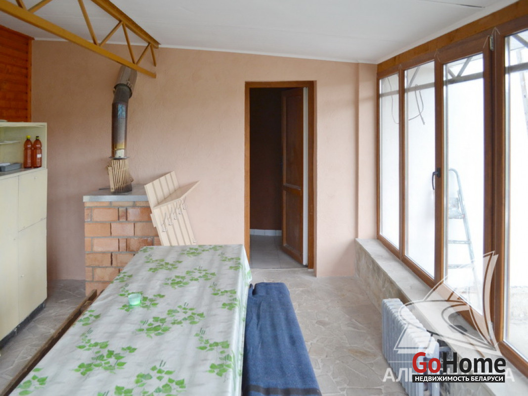 Жилой дом. 1960 г.п., реконструкция 2015 г. Брестский р-н. Газосиликатный блок, строительный брус / обрезная доска, штукатурка с фактурой "шуба" / пенопласт / профнастил. Фундамент: ленточный монолитный; материал - бетон. 2 этажа + мансарда. Общ. - 291,8 кв.м., жил. - 146,9 кв.м, кух.- 13,0 кв.м. Общ. СНБ - 305,5 кв.м. 9 комнат.Коммуникации: электричество - централизованное, отопление - газовое и камин, водоснабжение - скважина и гидрофор, канализация - местная. ХОЗ.ПОСТР: сарай, японская баня - чан. Участок - 0,2499 га.