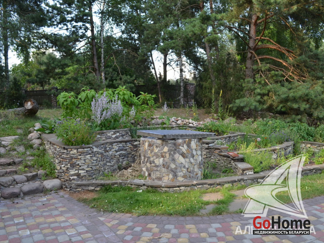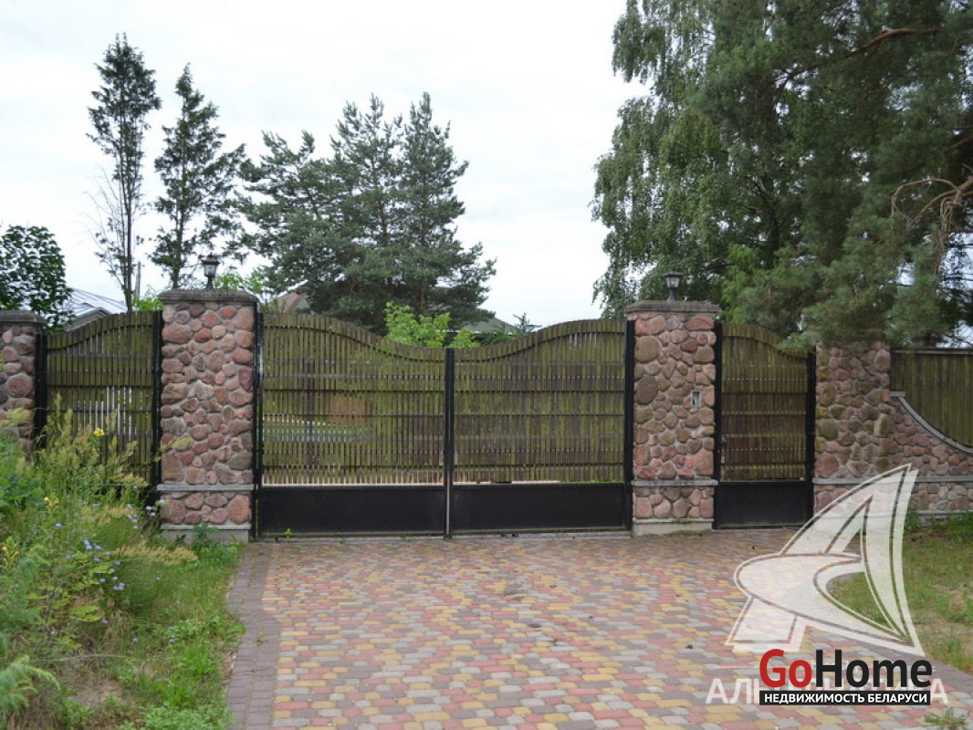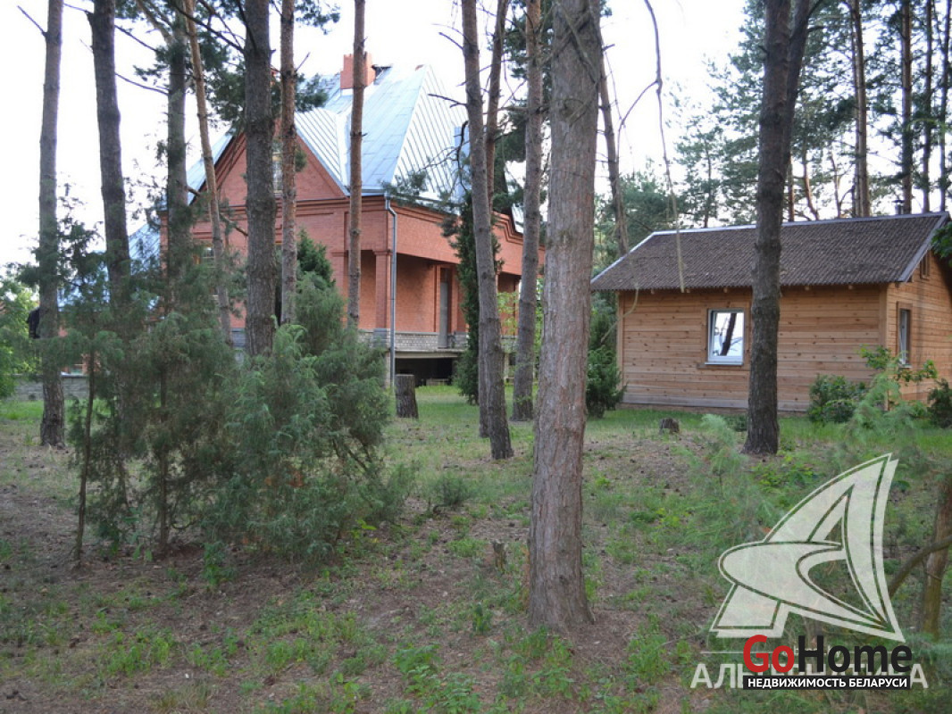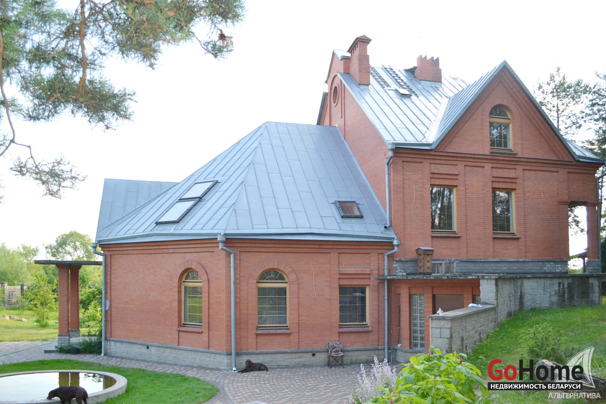 Жилой дом. 2006 г.п. Брестский р-н. Керамический кирпич / жесть. Фундамент: ленточный монолитный; материал - бетон. Цоколь+3 этажа. Общ. - 404,4 кв.м, жил.- 219,4 кв.м, кух.- 12,0 кв.м. 7 комнат. Общ.СНБ - 409,7 кв.м. Коммуникации: электричество, отопление - твердотопливный котел, водоснабжение - скважина и гидрофор, канализация - местная. ХОЗ.ПОСТР: баня с организованной зоной отдыха, беседка, домик для детских игр, дровница, 2 гаража, теплица. Загородный дом на берегу реки. 6 км от Бреста. Все жилые комнаты снабжены ванными комнатами. В доме немало интересных архитектурных и дизайнерских решений. Участок поражает своим нестандартным ландшафтом с природными перепадами высот, в который хорошо вписаны декоративные и плодовые деревья, есть прямой выход к реке. Участок - 0,2500+0,1409 га. Лот - 161661