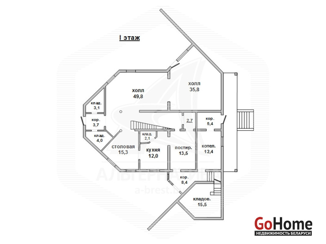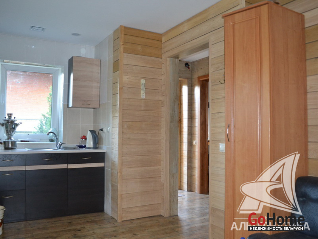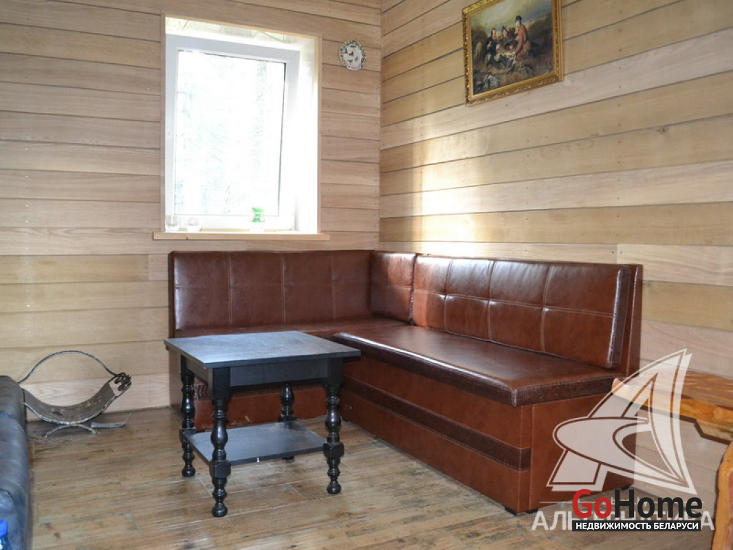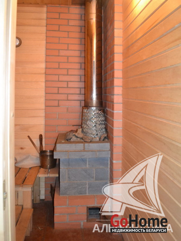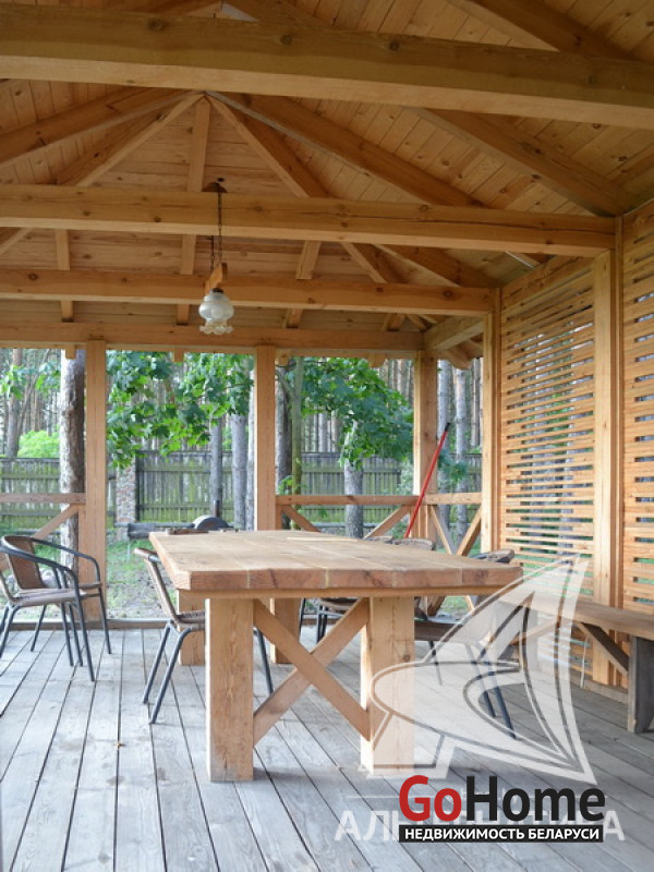 Жилой дом. 2006 г.п. Брестский р-н. Керамический кирпич / жесть. Фундамент: ленточный монолитный; материал - бетон. Цоколь+3 этажа. Общ. - 404,4 кв.м, жил.- 219,4 кв.м, кух.- 12,0 кв.м. 7 комнат. Общ.СНБ - 409,7 кв.м. Коммуникации: электричество, отопление - твердотопливный котел, водоснабжение - скважина и гидрофор, канализация - местная. ХОЗ.ПОСТР: баня с организованной зоной отдыха, беседка, домик для детских игр, дровница, 2 гаража, теплица. Загородный дом на берегу реки. 6 км от Бреста. Все жилые комнаты снабжены ванными комнатами. В доме немало интересных архитектурных и дизайнерских решений. Участок поражает своим нестандартным ландшафтом с природными перепадами высот, в который хорошо вписаны декоративные и плодовые деревья, есть прямой выход к реке. Участок - 0,2500+0,1409 га. Лот - 161661