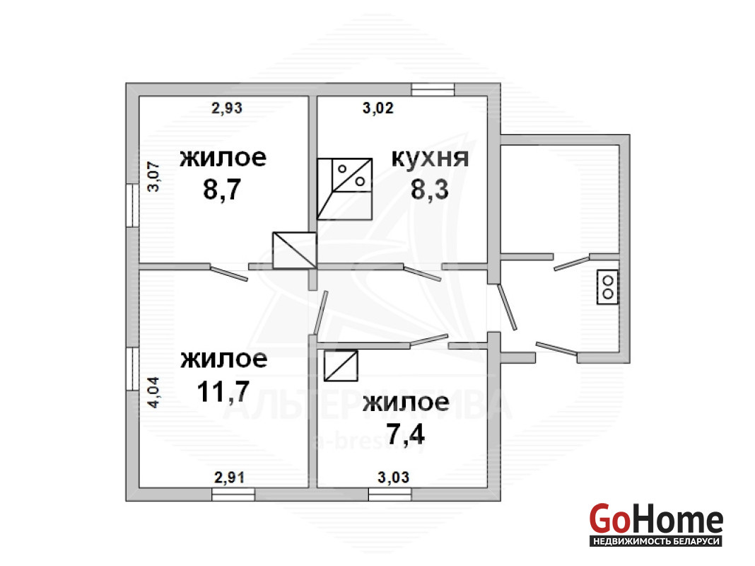 Жилой дом. 1966 г.п. г.Каменец. Керамический кирпич / оштукатурен, окрашен / шифер. Фундамент: ленточный монолитный; материал - бетон. 1 этаж. Общ. - 40,2 кв.м, жил.- 27,8 кв.м, кух.- 8,3 кв.м. 3 комнаты. Общ.СНБ - 47,6 кв.м. Коммуникации: электричество - централизованное, отопление - газовое, водоснабжение и газnbsp; - централизованные, канализация - местная. ХОЗ.ПОСТР: сарай. Участок - 0,1236 га. Лот - 161649