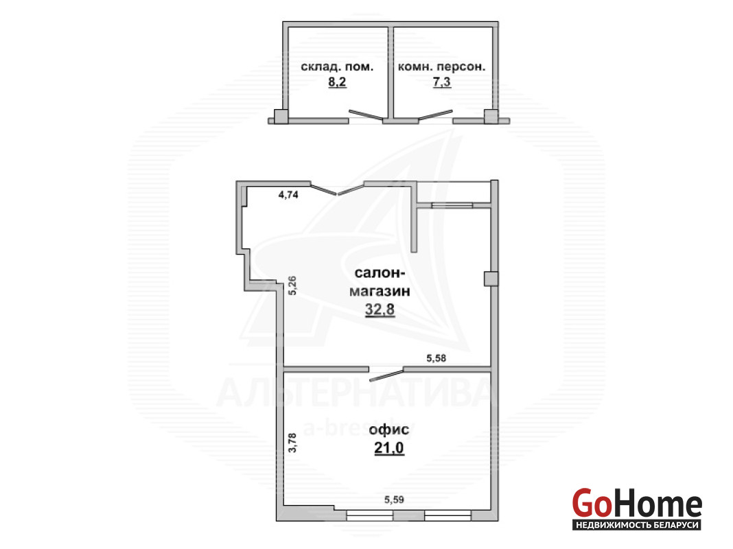 Многофункциональное помещение в собственность в центре города Бреста общей площадью 69,3 кв.м. Изолированное помещение расположено на 3 (третьем) мансардном этаже административно - торгового комплекса, расположенного на главной пешеходной улице города. Состоит из 2 (двух) проходных кабинетов (32,8 + 21 кв.м), а также 2 (двух) подсобных помещений (8,2 + 7,3 кв.м) с отдельным входом каждое. В помещение проведена вода, установлен кондиционер, пожарная сигнализация, индивидуальные приборы учета электроэнергии, видеонаблюдение. Рассматриваются все варианты. Лот - 180610