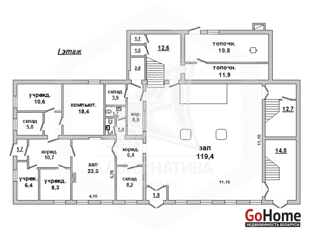 Здание нежилое в собственность в центральной части города Кобрин Брестской областиnbsp; общей площадью 663,7 кв.м. Отдельно стоящее двухэтажное капитальное строение с хозяйственными постройками. Здание находится в стадии реконструкции. Земельный участок площадью 0,0598 га предоставлен собственнику в долгосрочную аренду для обслуживания здания. Цена указана с НДС. Рассматриваются все варианты. Лот - 172822