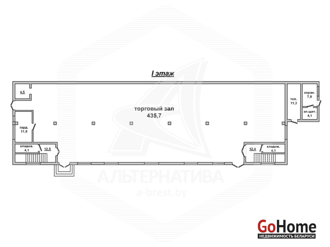 Здание специализированное розничной торговли (наименование - торговый центр) в собственность в районе Задворцы города Бреста общей площадью 994,8 кв.м. Отдельно стоящее двухэтажное капитальное строение 2008 года постройки. 1 (первый) этаж общей площадью 508,5 кв.м (в том числе торговый зал площадью 435,7 кв.м, топочная, собственная электрощитовая, помещение охраны и другие подсобные помещения); 2 (второй) этаж общей площадью 486,3 кв.м (в том числе торговый зал площадью 454,7 кв.м, бытовое помещение, отдельный санузел). Есть грузовой лифт между этажами. Технические характеристики здания: фундамент железобетонный, полы - плитка, стены блочные, перекрытия -nbsp; ж/б плиты, крыша - металлопрофиль, окна, двери - ПВХ. Все центральные коммуникации (в т.ч. собственная газовая котельная). Парковка. Цена указана с НДС. Рассматриваются все варианты. Лот - 171916