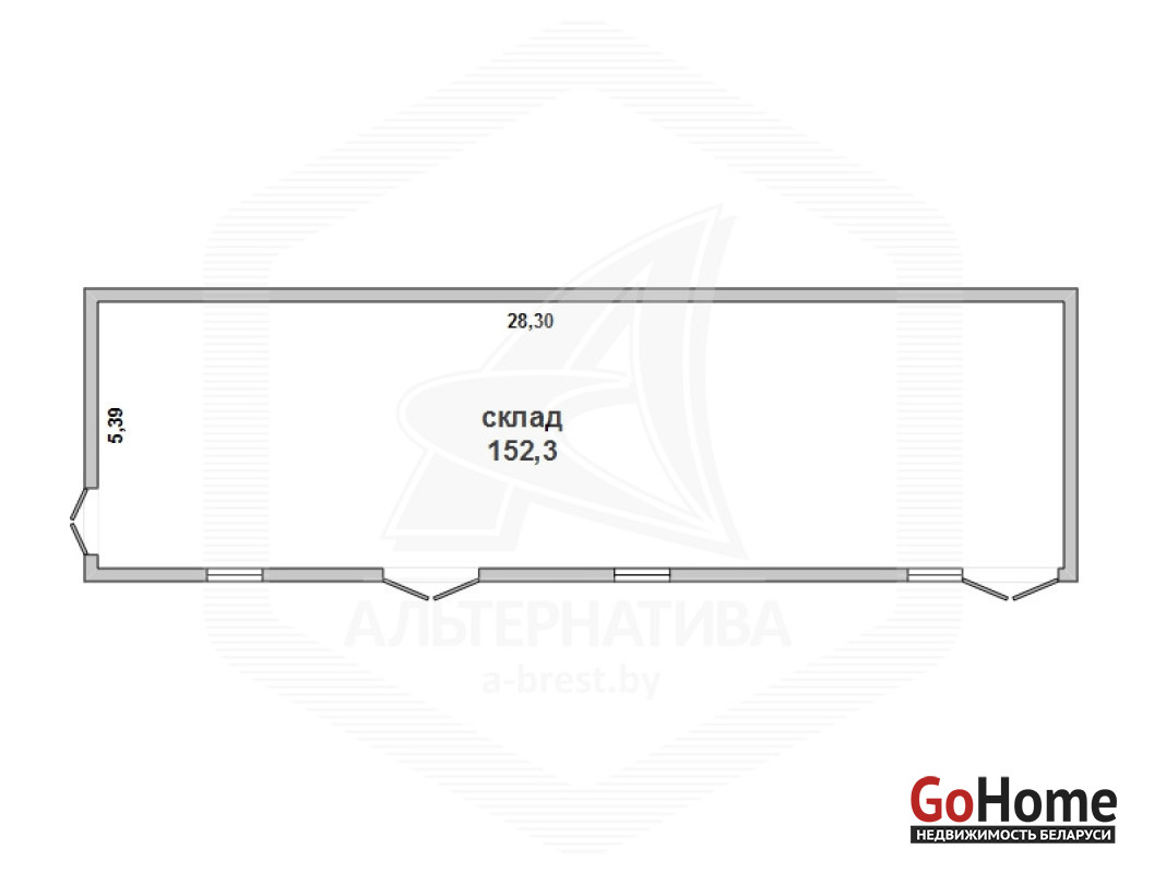 Производственно - складское помещение в собственность в районе строительного рынка города Бреста (р - н ул.Карьерной) общей площадью 152,3 кв.м. Изолированное помещение с двумя въездными воротами. Размеры 28,3 х 5,39 м. Технические характеристики помещения: фундамент бетонный, полы - плитка, стены блочные, окна - ПВХ, крыша жестяная. Коммуникации: электричество - 220 Вт. Рассматриваются все варианты. Лот - 171020