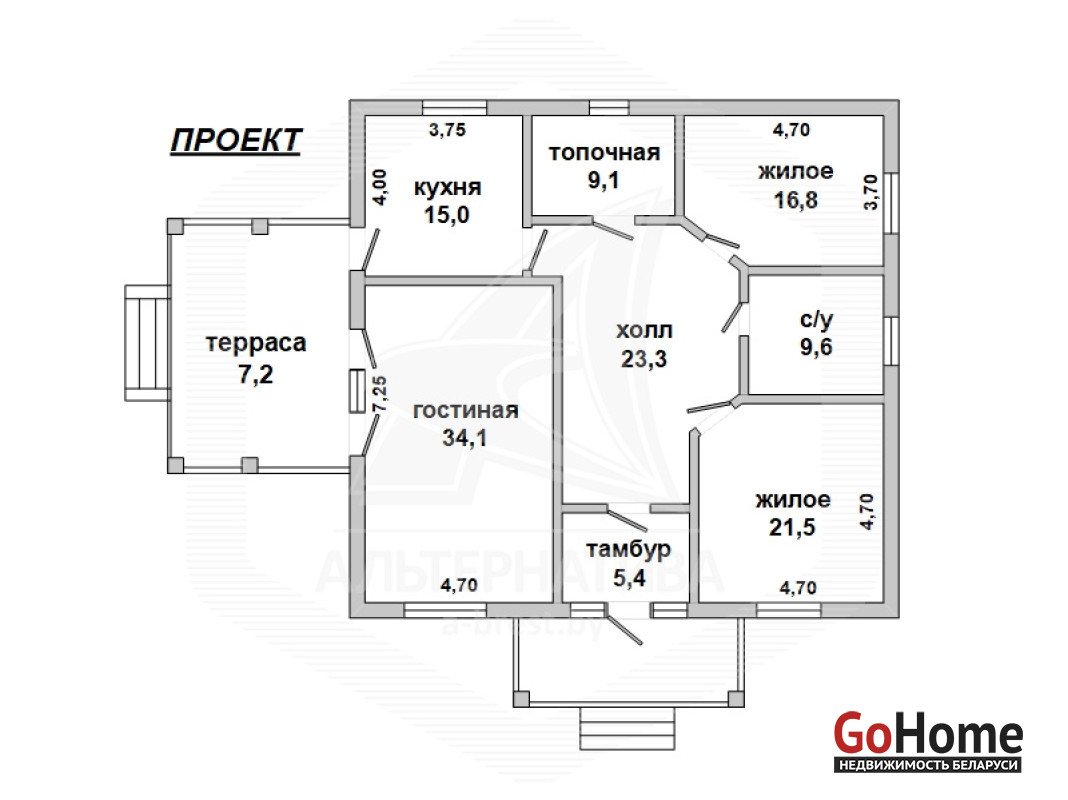 Коробка жилого дома в Брестском р-не. 2019 г.п. 1 этаж. Общ.СНБ - 142,0 кв.м, общ.- 142,0 кв.м, жил.- 72,46 кв.м, кух.- 15,0 кв.м. 3 комнаты, высота потолка - 2,7 м.